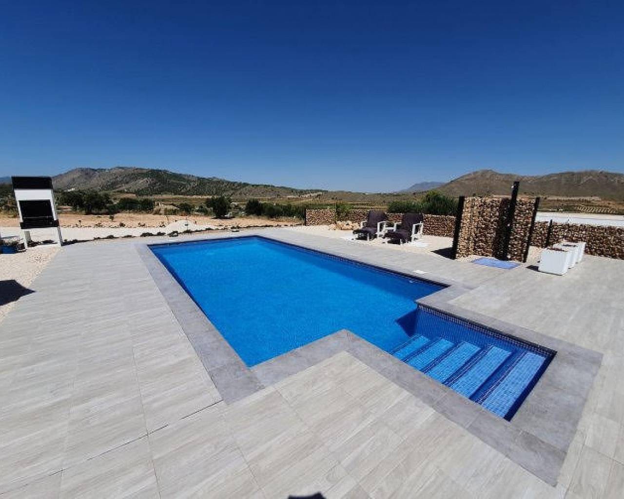 Preciosa villa de nueva construcción de 3 dormitorios y 3 baños en La Canalosa Listo en 4 meses. Moderna villa de obra nueva en La Canalosa. 10.000 m² de terreno, 200m² de casa y 45 m² de garaje doble. , ahora con baño exterior para la piscina y garaje cerrado. ¡Oferta especial! Persianas eléctricas incluidas, calefacción y aire acondicionado central, sistema de calefacción por conductos en toda la casa y portón eléctrico. Villa de diseño nuevo con diversos acabados interiores y exteriores. A 10 minutos de Pinoso y 5 minutos de Algueña. La villa incluye garaje doble, piscina, parcela y en perfecto estado de conservación. Los azulejos y los baños son aptos para cualquier reforma interior y se puede ampliar el diseño si necesita más espacio. (Cocina no incluida). Todas nuestras viviendas de obra nueva cuentan con luz y agua, e internet disponible en nuestras zonas. Muchas opciones disponibles: garaje, cocina de verano, piscinas de diferentes tamaños, casa de invitados… ¡La lista es interminable! Nuestras villas de nueva construcción ahora cuentan con las siguientes opciones para una vida autosuficiente (ya incluyen luz y agua de la red): Un cuarto dormitorio muy amplio más 25.000 € Sistemas solares completos Depósito de almacenamiento de agua para aguas grises/lluviosas Huertos elevados Varias opciones de huerto de árboles frutales Gallinero Bajos costes de funcionamiento en nuestras villas en Pinoso Impuesto municipal anual desde tan solo 300 € Internet rápido: 20 € al mes Opción solar para reducir la factura de la luz Sistemas de recogida de agua para reducir la factura del agua (que ronda los 150 € al año sin el ahorro) Contáctenos para consultar los precios de los servicios mencionados. En las proximidades del pequeño pueblo de La Canalosa, encontrará dos bares de tapas, un pequeño supermercado para sus compras diarias y un polideportivo. Además, estar a solo 5 minutos en coche de los pueblos de Hondón de las Nieves y Hondón de los Frailes ofrece aún más opciones para explorar y descubrir la zona. Por último, la razonable distancia en coche de 40 minutos al aeropuerto de Alicante y a las playas es ideal para quienes deseen disfrutar del sol y el mar en un entorno tranquilo. ¡Es el lugar perfecto para vivir o pasar las vacaciones! La Canalosa es un encantador pueblecito español que rebosa autenticidad y amabilidad. Con su pequeña tienda, ofrece todo lo necesario para las necesidades básicas, lo que lo convierte en un lugar conveniente tanto para locales como para visitantes. A solo 4 km, encontrará los pueblos de Hondón de las Nieves y Hondón de los Frailes, a poca distancia para ir de compras o disfrutar de una buena comida en uno de los restaurantes locales. Estos pueblos cercanos realzan el atractivo de La Canalosa, ofreciendo una magnífica combinación de tranquilidad y servicios cercanos. Ya sea paseando por sus pintorescas calles o disfrutando de la gastronomía local, La Canalosa y sus alrededores son un remanso de paz. El aeropuerto de Alicante y las playas están a solo 40 minutos.