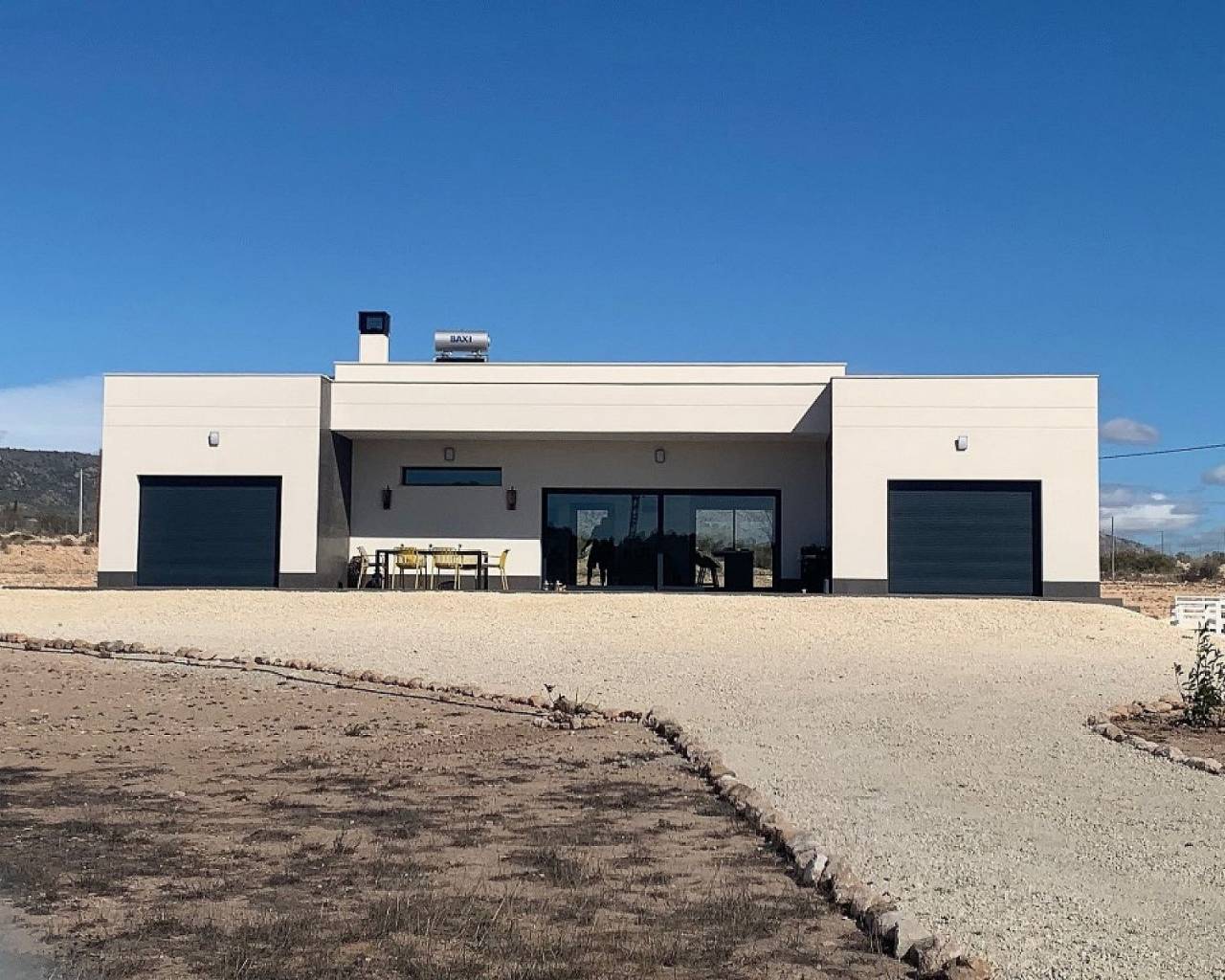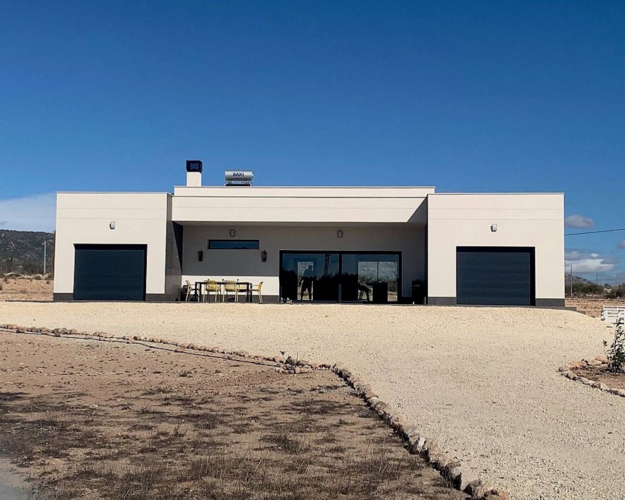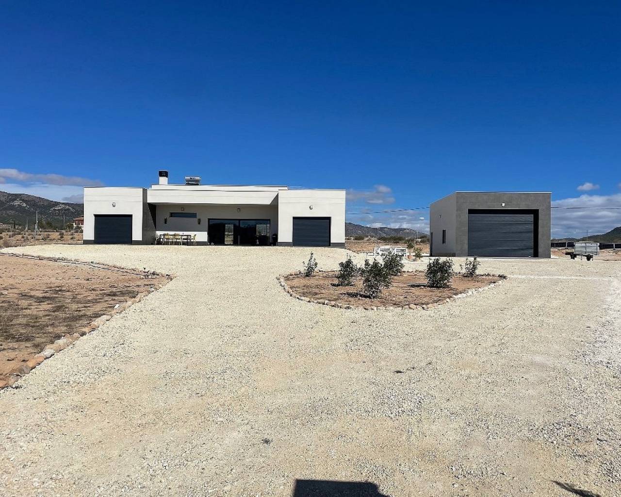Villas modernas de 3 dormitorios en Pinoso: llave lista en 8 meses. Estas hermosas residencias de campo están personalizadas para los gustos personales de cada cliente. El modelo que se muestra en estas imágenes tiene una casa de invitados adicional de 30 m2 y más tarde los clientes añadieron una barbacoa y una cocina de verano.