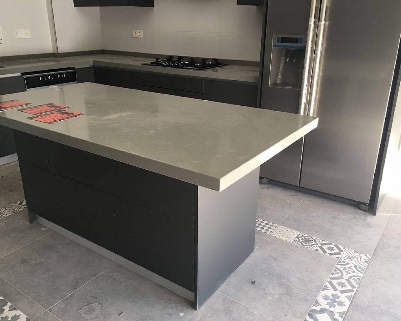 Elección de diseño de azulejos y escalones para piscina. Elección del granito para los escalones exteriores y los alféizares de las ventanas de las casas.