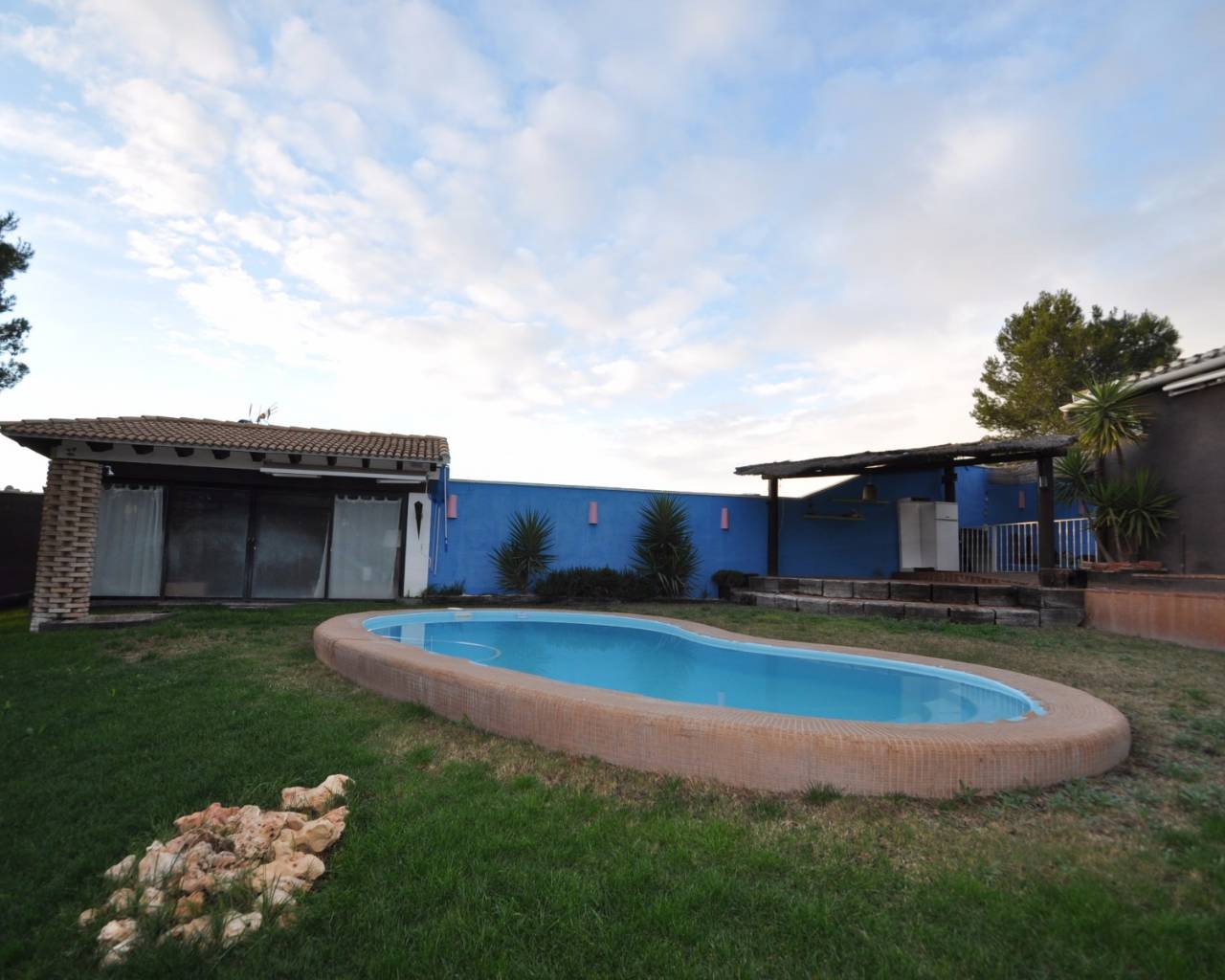 Una villa fantástica que está bien distribuida y bellamente terminado en el borde de la ciudad a poca distancia de tiendas y bares / restaurantes. La encantadora propiedad tiene 3 dormitorios y 2 baños, un salón de planta abierta con chimenea abierta comedor y cocina con una isla excelente superficie de trabajo adicional. Al exterior hay un patio cubierto muy grande que es muy privado y pintoresco. Un área de césped alrededor de la piscina en forma de riñón y una zona de barbacoa exterior. También hay una gran sala de fiestas con su propia cocina cubierta de barbacoa, zona de bar y WC, la ubicación perfecta para entretener a amigos y familiares. La parcela es de 2 niveles con un puerto de coche situado en la zona inferior. Esta es una magnífica propiedad con acceso asfaltado, cerca de la ciudad, a sólo 25 minutos de alicante y las playas, y los enlaces de comunicación son muy buenos. Hay vecinos en las inmediaciones, pero la propiedad sigue siendo muy privado
