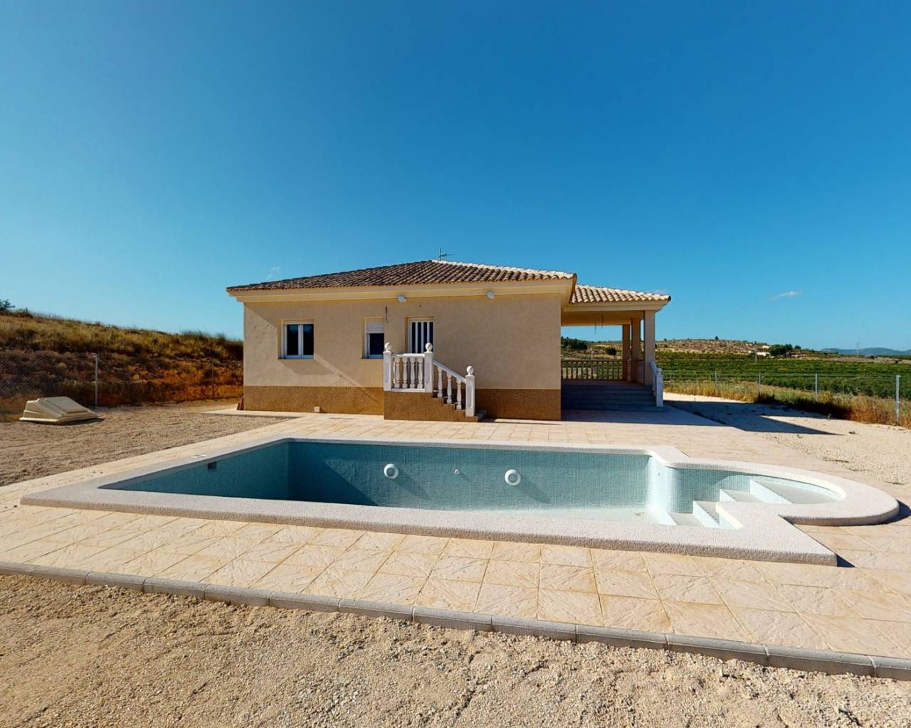 Esta es una gran oportunidad para adquirir una nueva villa totalmente personalizada según sus necesidades. Situada en una parcela de 10.000 m², esta propiedad ofrece tres dormitorios, dos baños, amplio salón con cocina americana y lavadero. Al frente de la propiedad hay un porche cubierto de buen tamaño. También tienes la posibilidad de tener esta coqueta villa con piscina por 18.000€ más. El constructor es local y está bien establecido en la zona y ha estado construyendo para nuestros clientes desde 2004. La propiedad está construida con una superestructura de hormigón y acero en la que todo el peso está sostenido por pilares de hormigón, lo que le da total flexibilidad a la hora de elegir la distribución del diseño. Además, la propiedad está construida sobre el suelo, lo que le brinda un espacio de arrastre debajo que no solo ayuda a reducir los problemas con la humedad, sino que también le permite un fácil acceso en caso de que desee instalar cableado o plomería adicional en una fecha futura. Los paramentos son de doble piel con placas aislantes de alta densidad en el hueco y las ventanas son de doble cristal, oscilobatientes. El gran beneficio de estas construcciones es que puede elegir los azulejos del piso, los azulejos del baño, los azulejos de la cocina y los muebles de la cocina. Por lo tanto, le permite personalizar completamente la casa y obtener exactamente lo que desea, incluso en el color externo de la propiedad. Increíble valor villa totalmente a medida contáctenos ahora para ver el progreso de la construcción, hable con nuestra cartera de clientes existentes y vea cómo podemos ayudarlo a realizar la casa de sus sueños. Tenemos un recorrido virtual de la propiedad disponible en nuestra sección de ''video'', ¡ve a verlo! Las propiedades se encuentran aproximadamente a cinco minutos del pueblo de Pinoso, que ofrece todas las instalaciones para el día a día, incluido un centro médico las 24 horas, bares, restaurantes, escuelas, etcétera. El cronograma de construcción normalmente tiene un máximo de seis meses garantizados y ofrecemos opciones de pago flexibles para ayudar a que el proceso sea simple y sin complicaciones para usted. Somos especialistas en la Costa Blanca y Costa Cálida con especialización en las regiones del Interior de Alicante y Murcia con especial énfasis en Elda, Pinoso, Aspe, Elche y alrededores. Somos una empresa establecida, bien conocida y de confianza que ha construido una sólida reputación entre compradores y vendedores desde que comenzamos a operar en 2004. Ofrecemos un servicio completo sin cargos ocultos ni sorpresas, desde el abastecimiento de la propiedad hasta su finalización. y un servicio postventa inigualable que incluye administración de propiedades, servicios de construcción y ayuda y asesoramiento general para hacer de su nueva casa un hogar. Con una cartera de más de 1400 propiedades en venta, estamos seguros de que podemos ayudarlo, así que háganos saber su propiedad preferida, presupuesto y ubicación, y nosotros haremos el resto.