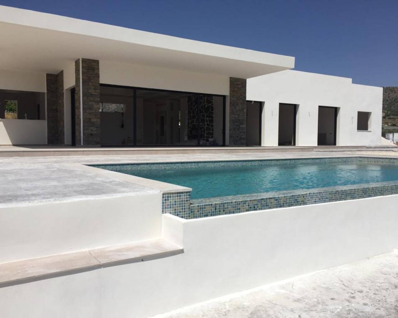 Esta villa sobre plano ofrece un diseño moderno con una superficie construida de 148 m², tres dormitorios, dos baños y una luminosa cocina abierta con salón. La distribución es funcional y está diseñada para una vida cómoda durante todo el año. El precio incluye piscina privada y la casa se puede personalizar según sus necesidades. La villa se construirá en una parcela de 10.000 m², que no está incluida en el precio base. Ofrecemos una amplia selección de más de 150 parcelas legales en diversas zonas rurales. Los precios de las parcelas y el coste final pueden variar según la ubicación y las características elegidas. Este tipo de obra nueva es ideal para quienes buscan espacio, privacidad y flexibilidad, a la vez que se encuentran cerca de pueblos como Pinoso, La Romana o Monóvar. Estas zonas son conocidas por sus paisajes, viñedos y su encanto tradicional español, a la vez que se mantienen cerca de la costa y del aeropuerto de Alicante. Perfectas para vivir a tiempo completo o como refugio vacacional. Disponemos de una amplia cartera de propiedades en la Costa Blanca y la Costa Cálida, especializándonos en fincas rústicas, villas, fincas, terrenos edificables y opciones de diseño y construcción en las regiones de Alicante y Murcia, con especial énfasis en Elda, Monóvar, Pinoso, Sax, Villena, Aspe, Fortuna, Albacete y muchas otras zonas de los alrededores. Llevamos establecidos desde 2004 y nuestro equipo cuenta con décadas de experiencia para ayudarle a encontrar y asegurar la casa de sus sueños. Le acompañamos en cada paso del proceso para garantizar que su compra en España sea segura y sin complicaciones. No estamos aquí para venderle una propiedad, sino para ayudarle a hacer realidad su sueño y encontrar la propiedad perfecta para usted. Con nosotros, está en las mejores manos. Contáctenos ahora para hablar sin compromiso sobre cómo usted también puede hacer realidad sus sueños.