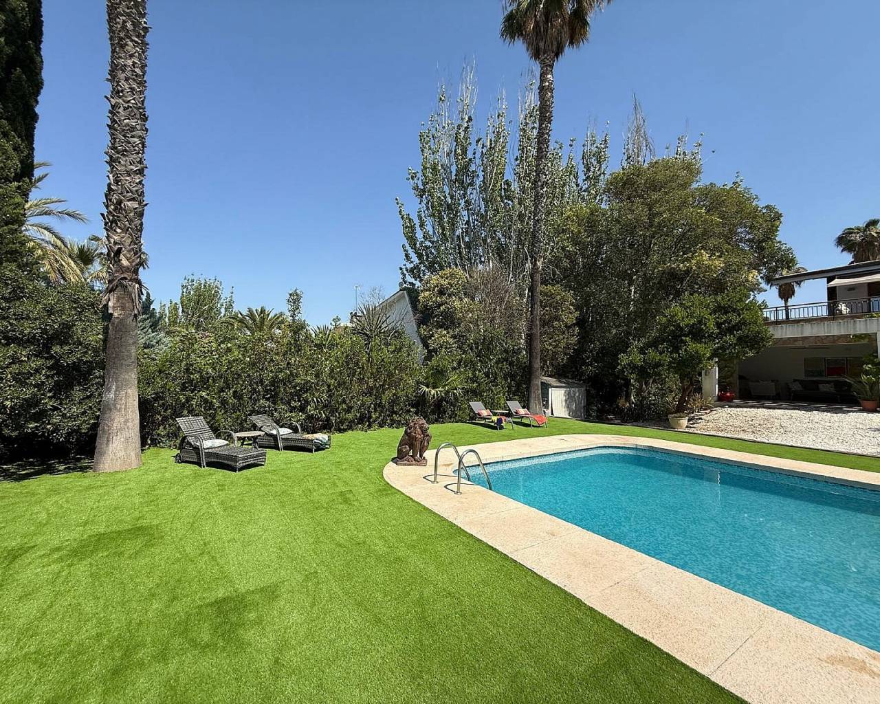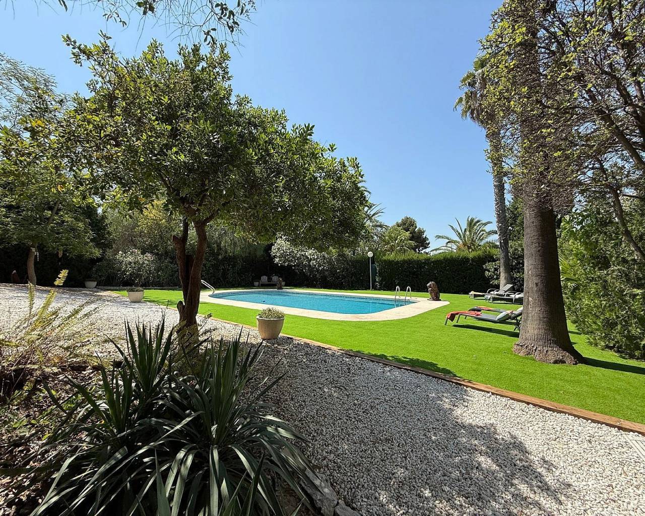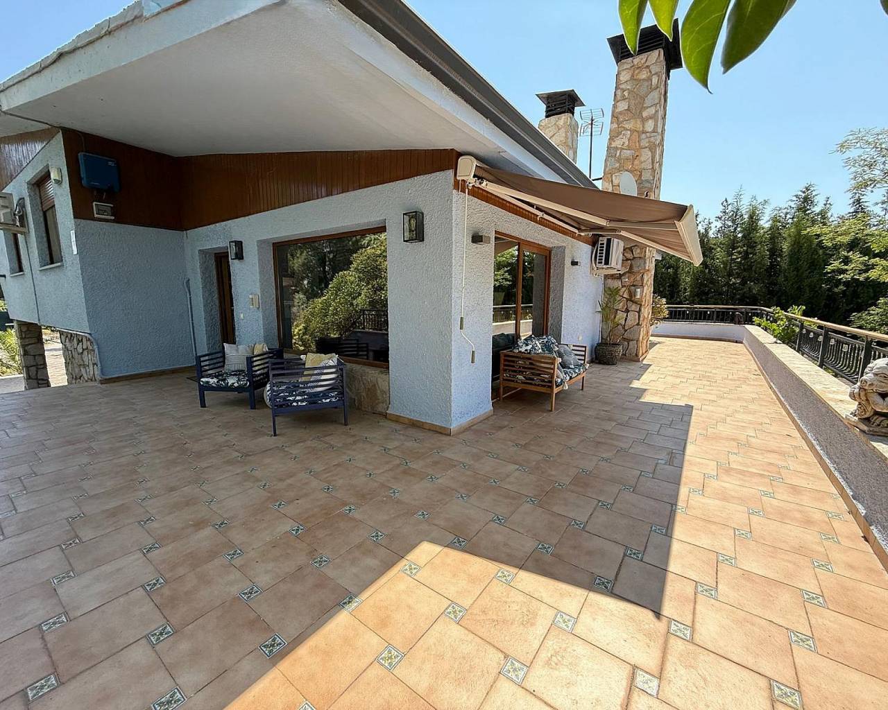 Exclusiva villa de 4 dormitorios y 3 baños en Loma Bada Petrer.. Nos complace presentar esta exclusiva e impresionante villa en Loma Bada, Petrer, con 4 dormitorios y 3 baños, dividida en 2 viviendas con energía solar y lista para entrar a vivir. Descubra esta excepcional villa ubicada en la codiciada urbanización Loma Bada, conocida por su seguridad las 24 horas, su tranquilidad y su exclusividad. Esta es una casa de ensueño que ofrece privacidad y flexibilidad. Destacan sus 4 dormitorios y 3 baños, diseñados inteligentemente para funcionar como dos espacios de estar independientes, ideales para familias numerosas o incluso para alquilar. Esta encantadora casa cuenta con un espacioso salón decorado con gusto y lleno de luz natural, una cocina moderna con acabados elegantes y todos los electrodomésticos necesarios, y dormitorios con acabados de alta calidad que ofrecen un ambiente cálido y acogedor. Los baños, de elegante presentación, cuentan con grifería de alta calidad. Los extras que hacen que esta casa destaque son la energía solar, además de la red eléctrica para una vida eficiente y energéticamente eficiente, aire acondicionado y calefacción central para mayor comodidad durante todo el año. Disfrute de total privacidad gracias al diseño del jardín y los espacios exteriores, y con su distribución de villa dos en uno, es perfecta para invitados, niños mayores o incluso como unidad de alquiler. Los hermosos jardines maduros están meticulosamente cuidados, con numerosas zonas de estar y una piscina privada para relajarse o entretenerse. Hay un amplio porche con cómodos asientos, perfecto para disfrutar de la tranquilidad con una copa de vino. Visite esta encantadora casa para comprobar por sí mismo que lo tiene todo: opciones de alojamiento flexibles, lista para entrar a vivir sin necesidad de hacer nada, una ubicación exclusiva y segura, y un impecable mantenimiento interior y exterior. Así que no pierda la oportunidad de poseer una propiedad especial en una de las zonas más codiciadas. Contáctenos hoy mismo para concertar una visita. Esta casa necesita ser vista para apreciarla plenamente y no se decepcionará; no hay nada que no le guste. Simplemente impresionante. Un poco sobre la zona. Petrer y Elda son dos grandes ciudades fusionadas en una, con una población total de más de 85.000 habitantes. Se encuentran a menos de 20 minutos en coche del centro de Alicante y de las playas, y a 20 minutos del aeropuerto de Alicante. La fabricación de calzado es la principal industria de la ciudad, y Elda alberga el Museo del Calzado. Elda también alberga una feria anual de calzado que atrae a expositores, diseñadores y fabricantes de toda Europa. También se fabrican papel y muebles. Cuenta con todos los servicios y supermercados, como Carrefour, Aldi, Mercadona, Lidl, Consum y otros, además de un centro comercial, un cine con películas en inglés semanalmente, bolera, dentistas angloparlantes, un gran gimnasio internacional, una veterinaria, mercados semanales, restaurantes de comida rápida, colegios infantiles, institutos, escuelas de música, un teatro, numerosos parques y una amplia variedad de bares y restaurantes.