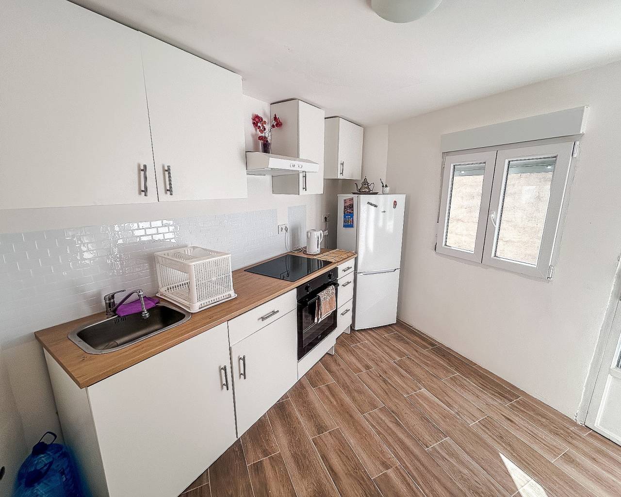 Piso Totalmente Reformado Listo para Entrar a Vivir en Monovar. Piso en venta en Monóvar – 75.000 € Se ofrece a la venta este amplio piso situado en la cuarta planta de un edificio sin ascensor, con una superficie de 127 m² construidos. La vivienda destaca por sus estancias luminosas y renovadas, lo que la convierte en una opción lista para entrar a vivir en pleno centro de Monóvar. Características principales Superficie construida: 127 m². Dormitorios: cuatro habitaciones muy espaciosas, todas con armarios empotrados, salvo la más pequeña. La habitación principal cuenta con balcón propio. Baños: dos baños completos totalmente reformados, ambos equipados con duchas de hidromasaje. Cocina: completamente nueva, moderna y funcional, con acceso a un balcón en la zona de galería. Salón y estancias comunes: amplios y bien distribuidos, con buena entrada de luz natural. Mobiliario y electrodomésticos: incluidos en el precio, todos con menos de un año de uso. Servicios: conexión a la red de agua potable y electricidad en funcionamiento. Año de construcción: 1975. Ubicación El inmueble está situado en el centro de Monóvar, con todos los servicios básicos a escasos minutos andando: supermercados, bares, restaurantes, tiendas, farmacias, entre otros. Su localización privilegiada ofrece la comodidad de vivir en el corazón de la ciudad, con todo al alcance sin necesidad de desplazamientos largos. Sobre Monóvar Monóvar es una localidad de la provincia de Alicante con un marcado carácter histórico y cultural, conocida por sus tradiciones, su gastronomía y su entorno natural rodeado de viñedos y paisajes montañosos. Además, cuenta con todos los servicios necesarios para la vida diaria y goza de una excelente comunicación por carretera con ciudades cercanas como Alicante, Elche, Elda o Novelda. Su ambiente tranquilo y acogedor la convierte en un lugar ideal tanto para residencia habitual como para inversión.