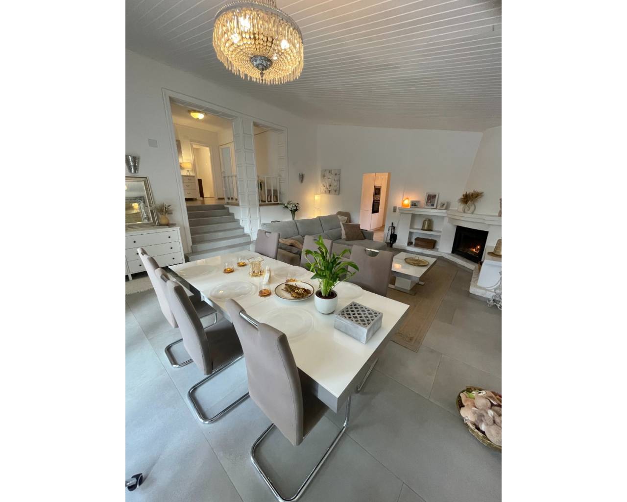 Dos salones grandes (31 m² y 42 m²): uno con chimenea, perfecto para noches acogedoras o reuniones familiares; el otro, luminoso y espacioso, ideal para las noches de verano con las puertas abiertas, disfrutando de las vistas a la piscina y el jardín con su preciosa iluminación.