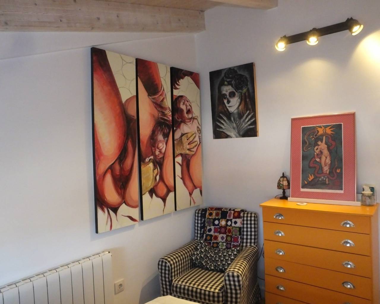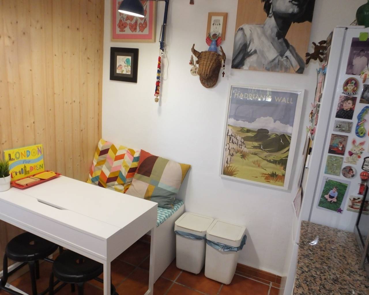 Desde el segundo dormitorio, hay una escalera que conduce a un entrepiso con un tercer dormitorio y área de estudio.