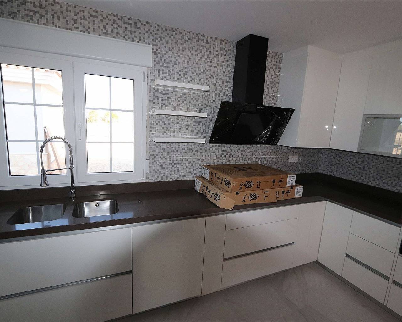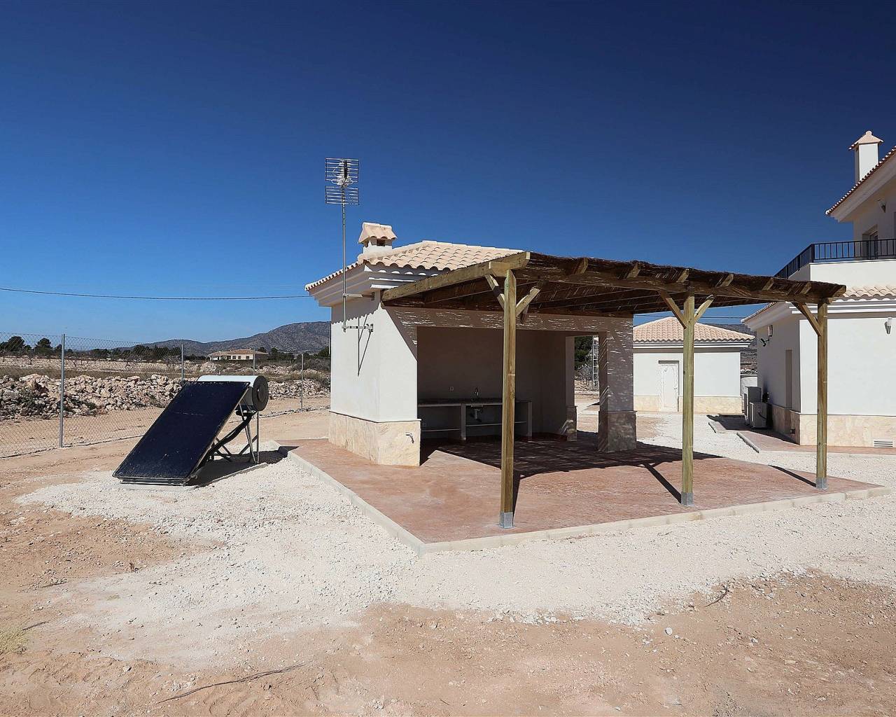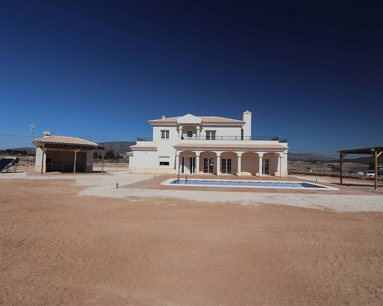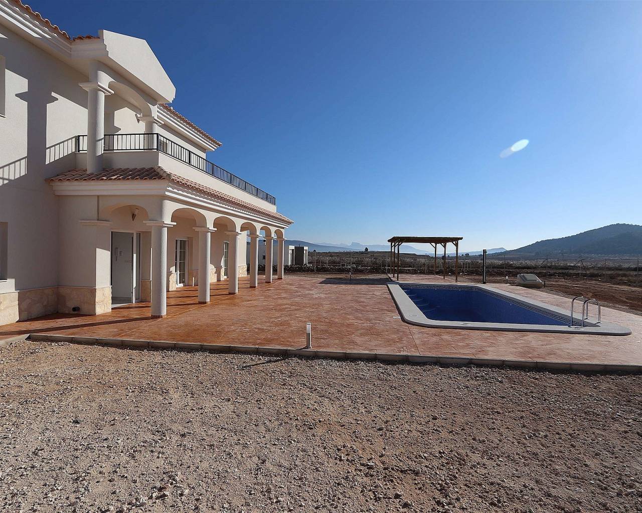 Villa neuve avec facteur WOW!. V Villas neuves de rêve dans la magnifique campagne d'Alicante. OPTION 120 MT2 : Prix de la maison et piscine de 8 x 4 mètres : 297 000 euros. Le constructeur contribuera à hauteur de 30 000 euros à la construction de votre terrain. La plupart des maisons coûtent environ 60 000 à 70 000 euros. 3-4 chambres et 2-3 salles de bains. OPTION 150 MT2 : Prix de la maison et piscine de 8 x 4 mètres : 337 000 euros. Le constructeur contribuera à hauteur de 30 000 euros à la construction de votre terrain. La plupart des maisons coûtent environ 60 000 à 70 000 euros. 3-4 chambres et 2-3 salles de bains. OPTION 163 MT2. Prix de la maison et piscine de 8 x 4 mètres : 357 000 euros. Le constructeur contribuera à hauteur de 30 000 euros pour votre terrain, la plupart des prix étant actuellement autour de 60 000/70 000 euros. 3-4 chambres et 2-3 salles de bains. OPTION 180 MT2 : Prix de la maison et de la piscine de 8 x 4 mètres : 381 000 euros. Le constructeur contribuera à hauteur de 30 000 euros pour votre terrain, la plupart des prix étant actuellement autour de 60 000/70 000 euros. 3-4 chambres et 2-3 salles de bains. OPTION 195 MT2 : Prix de la maison et de la piscine de 8 x 4 mètres : 401 000 euros. Le constructeur contribuera à hauteur de 30 000 euros pour votre terrain, la plupart des prix étant actuellement autour de 60 000/70 000 euros. 3-4 chambres et 2-3 salles de bains. OPTION 220 MT2 Prix de la maison et de la piscine de 8 x 4 mètres : 443 000 euros. Le constructeur contribuera à hauteur de 30 000 euros pour votre terrain. La plupart des prix sont actuellement d'environ 60 000 à 70 000 euros, avec 3 ou 4 chambres et 2 ou 3 salles de bains. OPTION 225 MT2 : Prix de la maison et de la piscine de 8 x 4 mètres : 454 000 euros. Le constructeur contribuera à hauteur de 30 000 euros pour votre terrain. La plupart des prix sont actuellement d'environ 60 000 à 70 000 euros, avec 4 ou 5 chambres et 2 ou 3 salles de bains. OPTION 245 MT2 : Prix de la maison et de la piscine de 8 x 4 mètres : 487 000 euros. Le constructeur contribuera à hauteur de 30 000 euros pour votre terrain. La plupart des prix sont actuellement d'environ 60 000 à 70 000 euros, avec 5 ou 6 chambres et 3 ou 4 salles de bains. OPTION 270 MT2 : Prix de la maison et de la piscine de 8 x 4 mètres : 545 000 euros. Le constructeur contribuera à hauteur de 30 000 euros à votre terrain, la plupart sont aujourd'hui autour de 60/70 000 euros 5-7 chambres et 3-5 salles de bains Toutes les maisons comprennent : Une terrasse en béton imprimé de 2 mètres autour de la piscine (couleur et motif au choix) et 1 mètre autour de la maison Une entrée sécurisée et clôturée sur 3000 m² Climatisation gainable préinstallée Cuisine standard incluse Porte de sécurité Fenêtres oscillo-battantes allemandes (ou coulissantes selon préférence) Cheminée avec conduit intégré Pré-installation pour TV et internet Allée en gravier avec finitions autour de la maison Fosse septique Salles de bains : Colonne de douche, bac à douche ou baignoire Meubles de salle de bain (plusieurs coloris disponibles) avec vasques, robinets et miroirs Grand choix de carrelages muraux Revêtements de sol : Large sélection de carreaux en céramique (effet bois, plusieurs couleurs, etc.) Cuisine : Meubles de cuisine avec portes et poignées standards Évier et robinet en inox Pré-installation pour four, lave-vaisselle et hotte Plan de travail en granit inclus (autres options en supplément) Électroménagers non inclus Escalier : Escalier en marbre (crème ou gris) avec garde-corps inclus Grande fenêtre fixe pour plus de luminosité Piscine : Choix des carreaux et des marches pour la piscine Possibilité d’agrandir la piscine à 10x5 mètres pour 4500 euros Options supplémentaires : Garage simple ou double en option Maison d’invités personnalisable Terrains et construction Nous disposons de plusieurs terrains constructibles, certains à distance de marche d’un village, d’autres en pleine nature. Nos terrains les plus populaires se situent à 5-10 minutes en voiture d’un village, avec de superbes vues et tous équipés de l’eau et de l’électricité. Les meilleurs terrains avec vue, eau et électricité coûtent 60 000 euros. Vous pouvez personnaliser votre maison selon vos envies : la plupart des modifications intérieures sont gratuites, et nous pouvons agrandir la maison ou même construire votre propre design. Construction clé en main en 7 à 8 mois après le premier paiement. Tous les documents officiels sont inclus (permis de construire, licence d’habitation, garantie décennale), ainsi que des rapports hebdomadaires et photos par drone. Système de paiement Réservation de terrain : 10 000 euros Paiements échelonnés possibles : acompte initial de 30 % du coût de la construction (hors terrain), puis deux paiements de 30 % et un dernier de 10 % à la fin. Le premier paiement inclut les plans d’architecte, la licence de construction, la clôture, les fondations et la structure en béton. Emplacements disponibles Nos maisons peuvent être construites dans les zones suivantes : Pinoso, Albatera, Hondón de las Nieves, Hondón de los Frailes, Aspe Autres localités : Monóvar, La Romana, Cañada del Trigo, Sax, Salinas, Dolores, Catral (en fonction des terrains disponibles) Les terrains disponibles sont situés dans la région viticole d’Alicante, offrant de magnifiques paysages. Ils sont tous à moins de 10 minutes en voiture des commerces, restaurants et services essentiels. La plupart de nos terrains se trouvent à 45 minutes en voiture de l’aéroport, de la ville et des plages d’Alicante. Pourquoi choisir Pinoso ? Pinoso (El Pinós) est l’une des villes les plus prospères d’Espagne, connue pour : Son industrie du marbre Ses vignobles et son agriculture Son industrie de la chaussure Ses salines Pinoso dispose de toutes les commodités : Supermarchés : Consum, Día