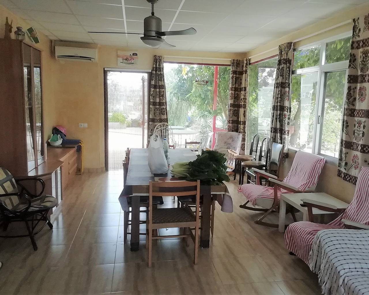 Belle Villa à Ricabacica, Abanilla + oliveraie à Partidor. Nous sommes ravis de vous proposer cette magnifique Villa à Ricabacica à Abanilla à 2km de Mahoya. Cette propriété est vendue accompagnée d'oliviers dans le Partidor. Celui-ci a été rénové en 2018 et a 175m2 construits où l'on peut trouver la salle à manger, une cuisine indépendante avec cellier et cheminée, 4 chambres et 1 salle de bain. Il a également des armoires encastrées, la climatisation et des fenêtres à double vitrage. La partie extérieure est composée de 823m2 qui abritent deux grands jardins bien entretenus pleins d'arbres fruitiers luxuriants, deux grandes terrasses, un solarium, une piscine 2x4, un poulailler ou un chenil, un entrepôt, un barbecue, un garage pour 3 voitures, un portail électrique et tout est clôturé. Cette Villa est située dans une belle région entourée par la nature avec des vues plus que spectaculaires. Si vous aimez l'environnement rural, il possède de nombreuses zones pour se promener et faire des itinéraires, tout en étant proche de la rivière Chícamo, une rivière d'un grand intérêt géologique, botanique et faunistique. Cette Villa est également à quelques minutes à pied des restaurants et des arrêts de bus. Abanilla est une ville typique de l'intérieur de la Murcie, située au pied de la montagne El Zulum et offrant une vue sur le paysage fertile en direction du parc national de la Sierra de la Pila. La ville est un labyrinthe de rues étroites reliant les places pittoresques avec leurs fontaines et monuments. Construites sur les pentes inférieures d'El Zulum, certaines rues sont si raides qu'elles se transforment en escaliers. L'architecture centrale est traditionnelle, bien que souvent étonnamment récente. Le palais, l'église et les bureaux du conseil sont tous de beaux bâtiments historiques. Abanilla est située à environ 1 heure 15 minutes de route à l'intérieur des terres à l'ouest de l'aéroport d'Alicante et à environ 1 heure 30 minutes de route de l'aéroport de Murcie San Javier. La capitale de Murcie se trouve à environ 35 kilomètres. Les environs d'Abanilla sont très fertiles, avec de nombreux arbres fruitiers et à noix, ainsi qu'une pléthore de jardins maraîchers fournissant des produits frais et sains. Le paysage est caractérisé par un paysage étrange de falaises basses et de ravins profonds remplis d'agrumes, la ville dispose de bonnes installations sportives pour le tennis et le football, et les nombreux kilomètres de routes de campagne tranquilles sont idéaux pour le coureur de fond et le cycliste aventureux. De nombreuses promenades partent de la ville elle-même, et si vous avez envie de relever un défi, essayez l'ascension d'El Zulum, une montée difficile, qui au cœur de l'hiver se vante souvent d'un sommet enneigé. Abanilla abrite une cuisine rustique typique de ragoûts et de plats à base de viande, tirant toujours parti des produits locaux.