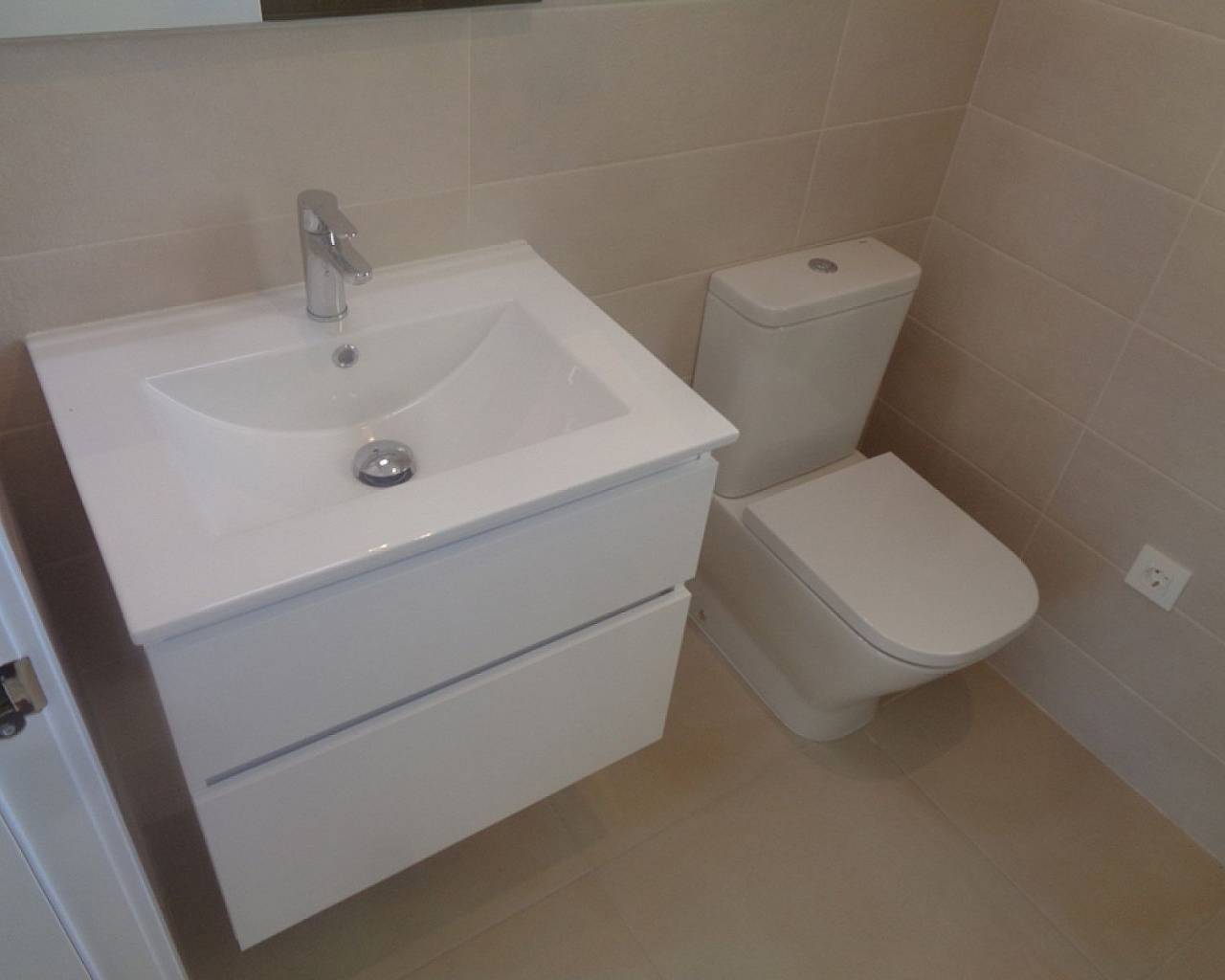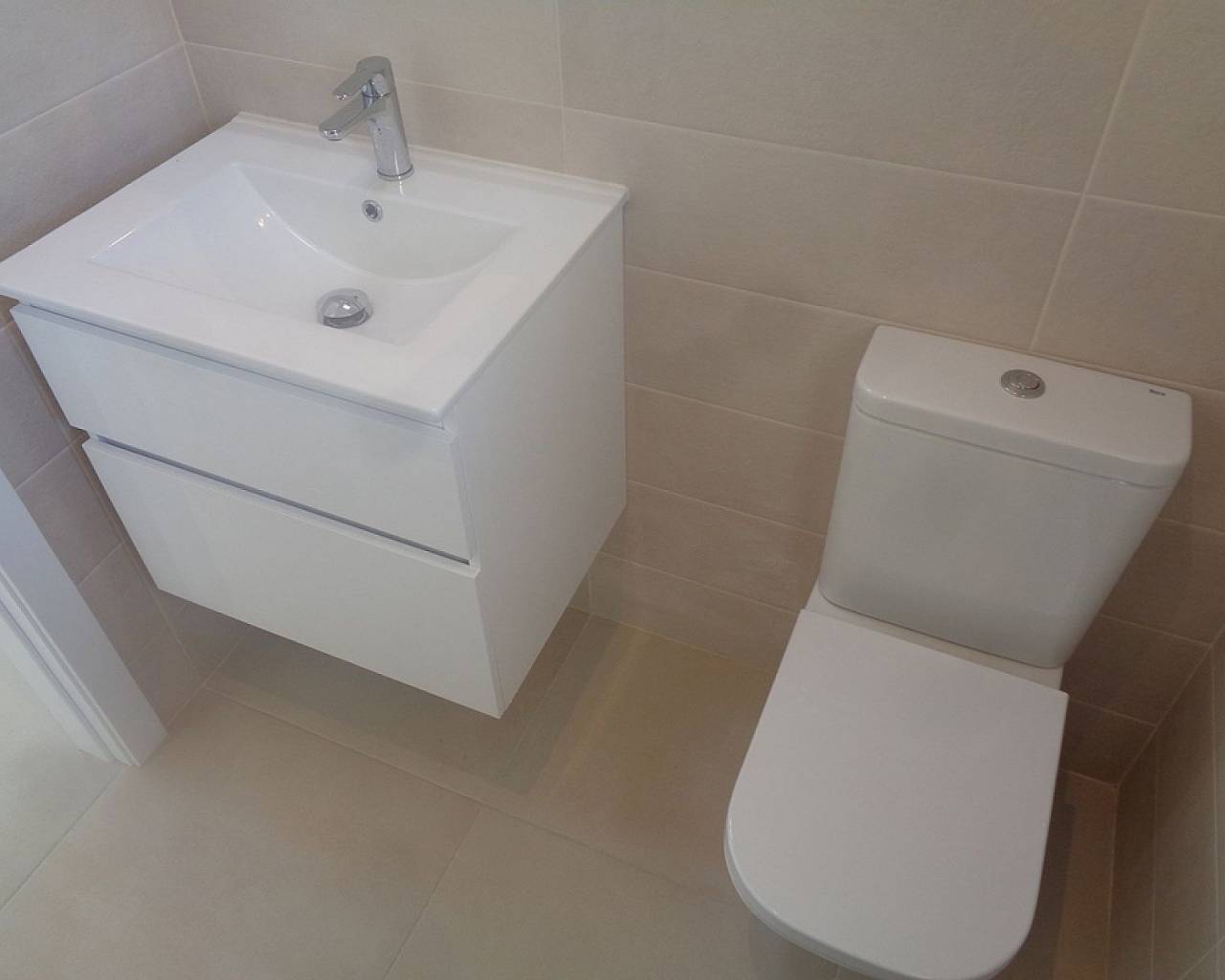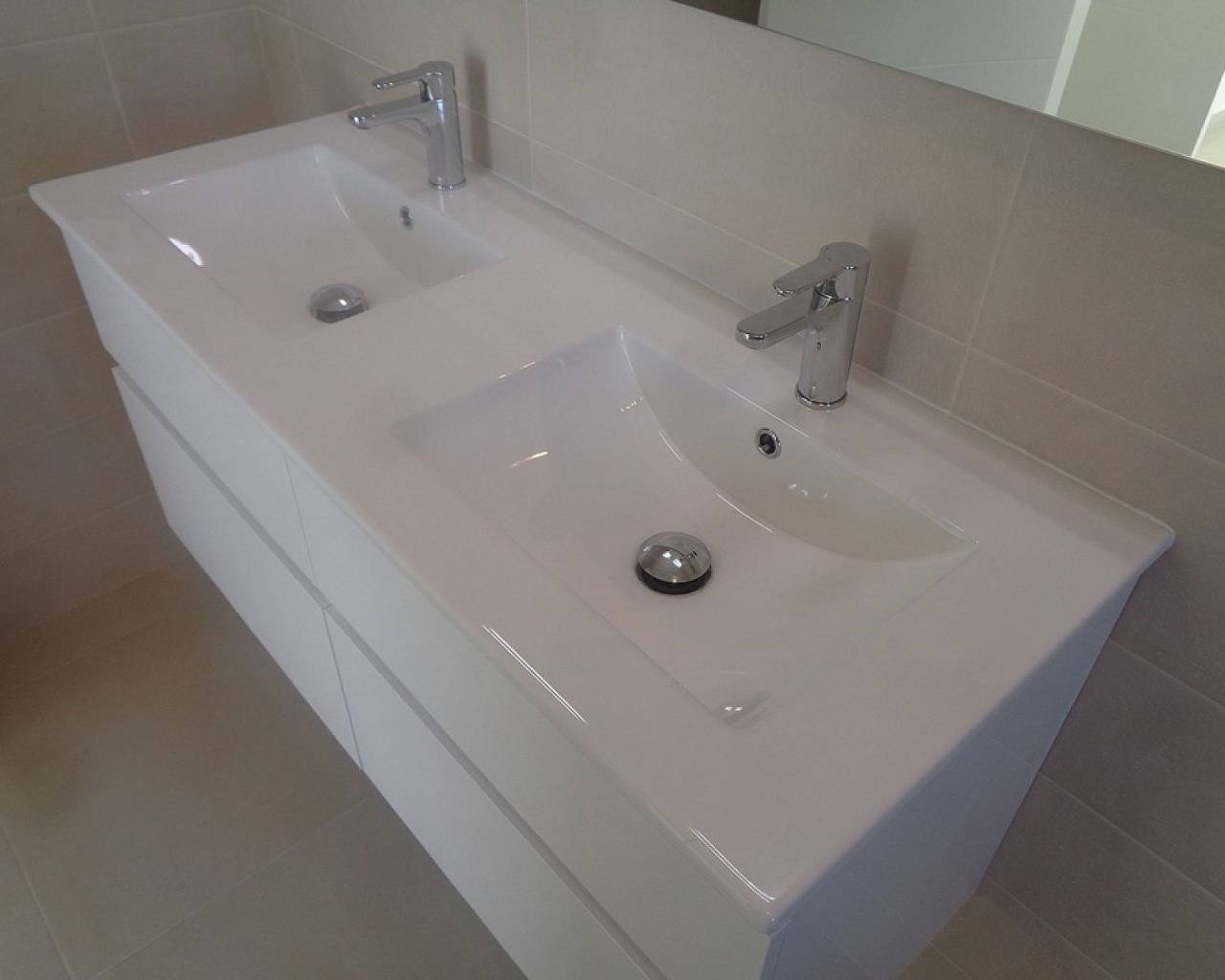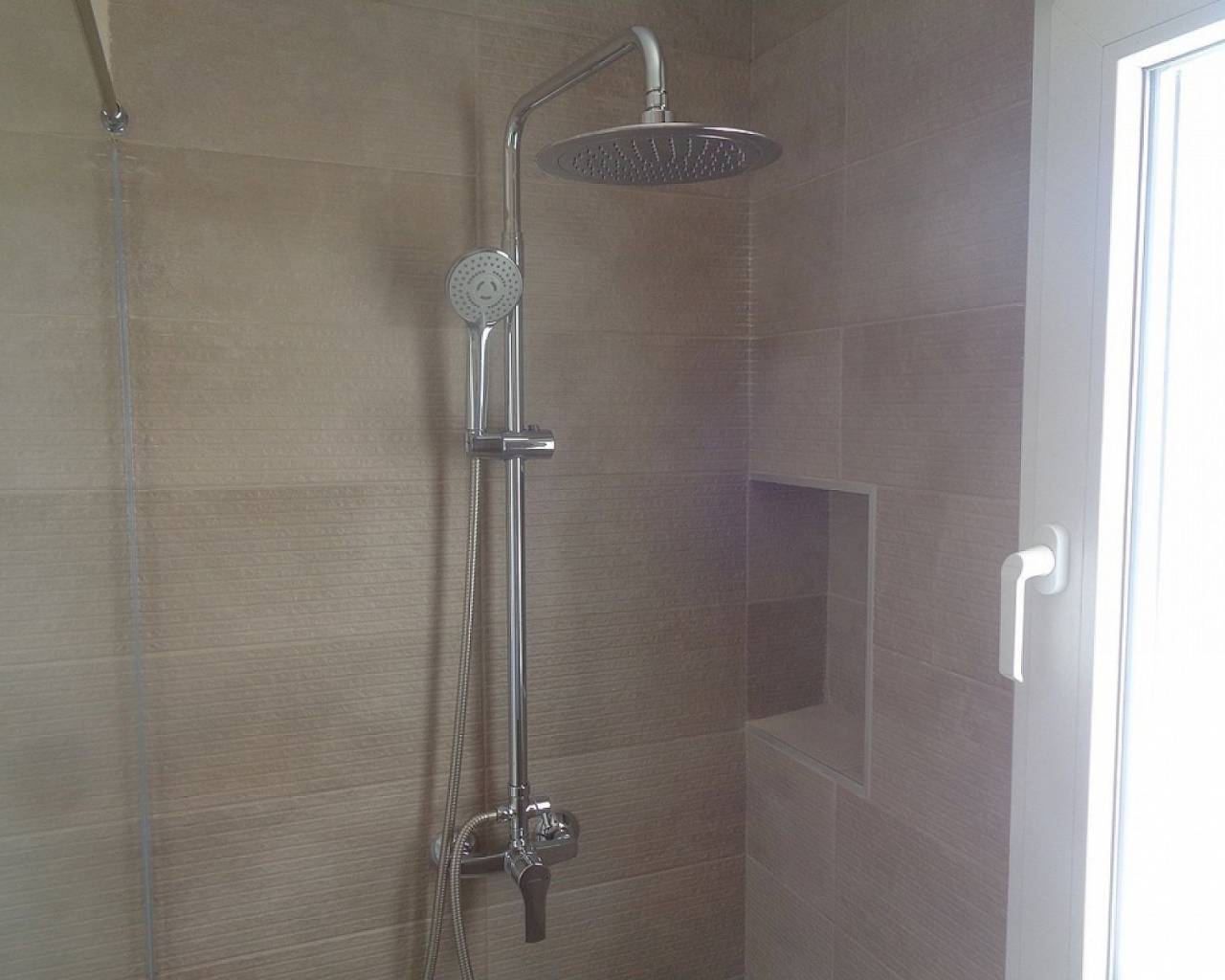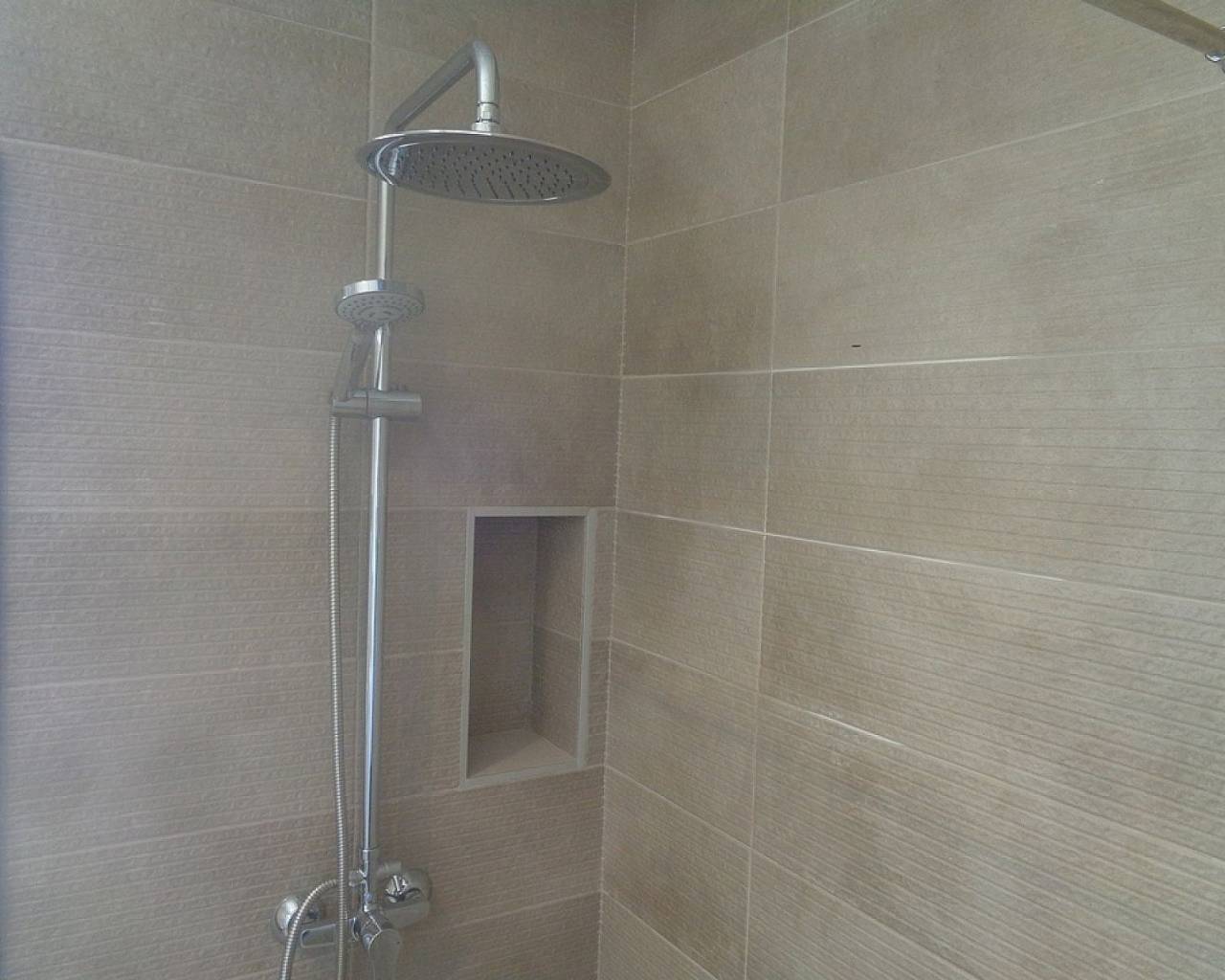 Les salles de bains comprennent une colonne de douche, un receveur de douche ou une baignoire, des meubles lavabo (différentes couleurs au choix) avec lavabos, robinetterie et miroirs, ainsi qu'un grand choix de carrelage mural.