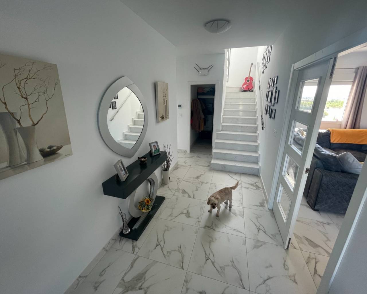 - Hall d'entrée élégant avec escalier en silestone et carrelage en marbre