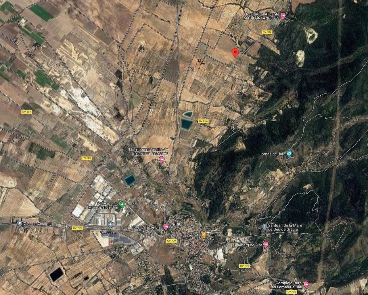 Terrain constructible de 25 000 m2 à Biar avec eau et électricité. Nous sommes fiers d'offrir à la vente ce terrain (25 000 m2) avec eau et électricité et à distance de marche d'un bar.