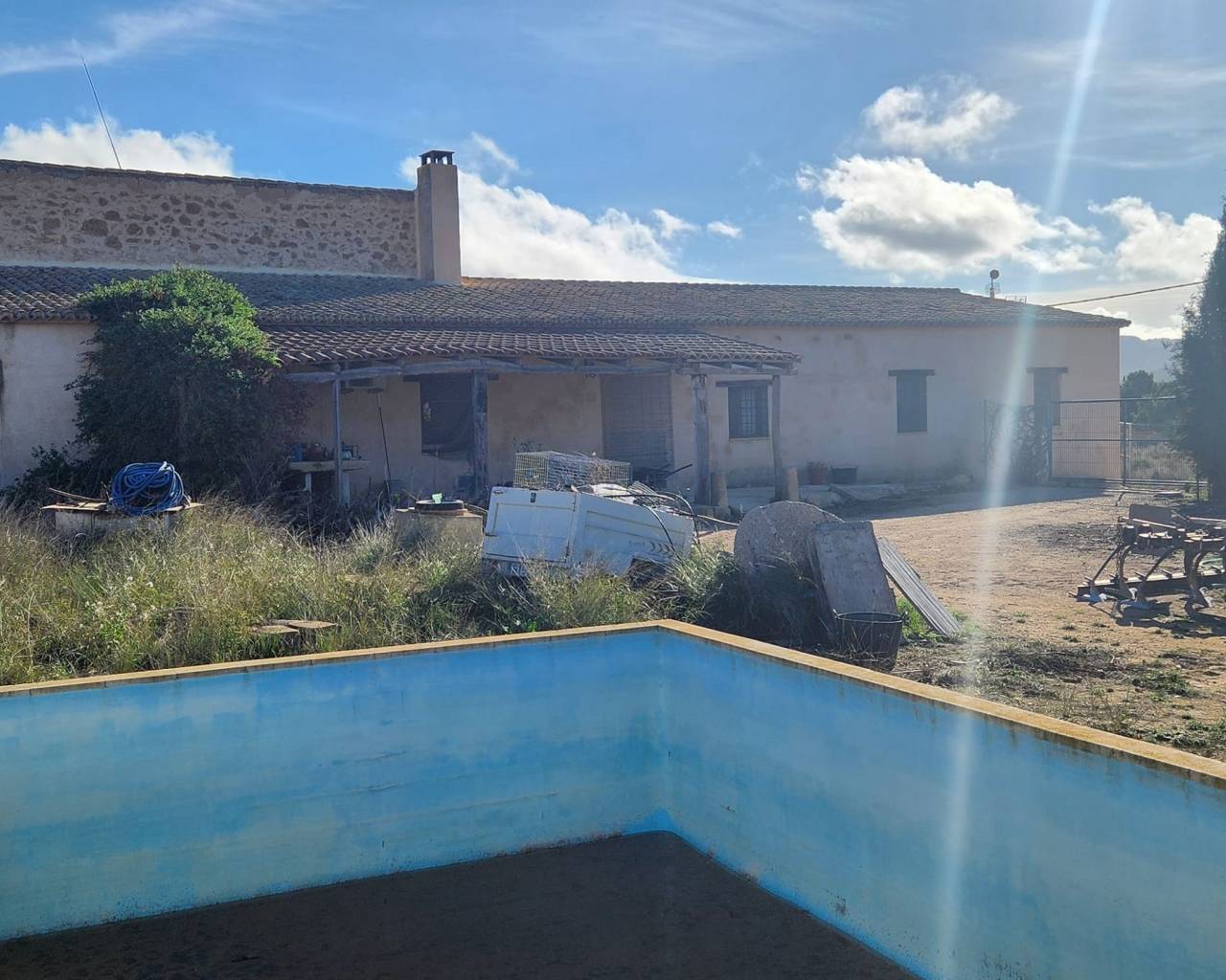 La maison est construite en pierre et dispose d'un terrain clôturé d'environ 3 400 m2, ainsi que d'une cour à l'arrière, et fait partie d'un "groupe campo". Le terrain comprend une piscine à l'ancienne, où vous la remplissez, la videz et la remplissez lorsque l'eau devient sale. Vous pouvez ajouter une pompe et un filtre si nécessaire.