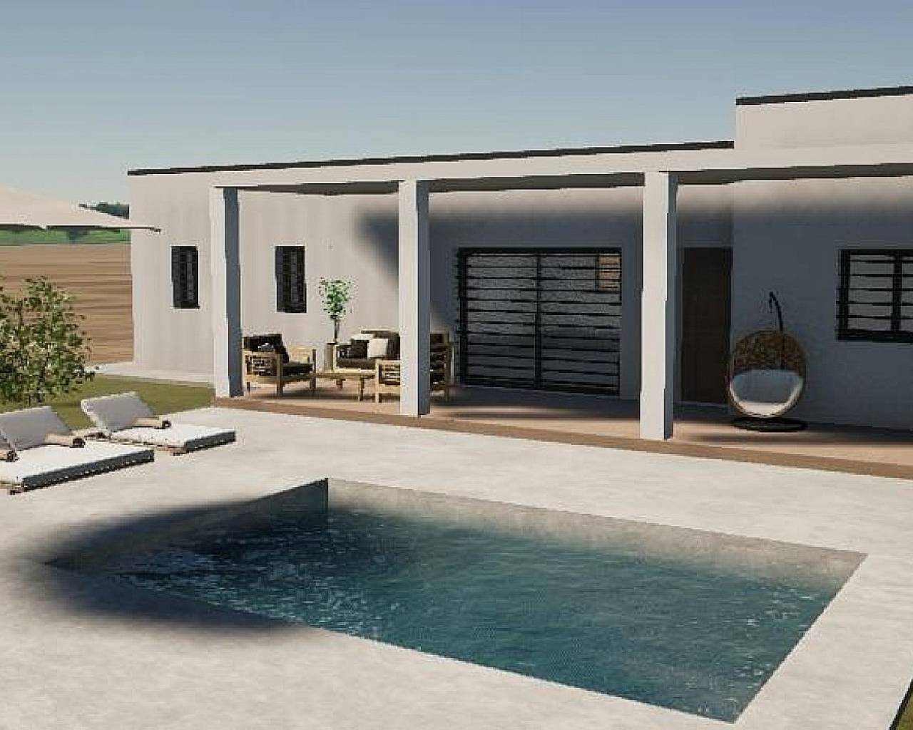 Fabuleuse nouvelle construction Abanilla et Canada del Trigo. Connaissez-vous le phénomène du néo-ruralisme? This is the migratory movement of society today in the areas where people live where the environment is free, calm and with a level of environmental pollution. Zulum's Houses selectionne les endroits les plus attractifs d'Espagne à développer des projets urbains qui répondent aux nouvelles exigences que le nouveau kisses de la société. I projected the construction of 5 family houses. El Partidor, located in Abanilla in the Region of Murcie, is located 5 minutes from the village with all the services (commerce, health, safety, educational centers for others). Furthermore, the houses are found in a natural environment just minutes from the Chicamo River for recreation and tourism. Emplacement Conceptions 3D Maison unifamiliale Google Maps : https://maps.app.goo.gl/SJzkxHzJMgm71xJUA Logement : 160m General characteristics Type of structure : Dalle sanitaire et toit plat infranchissable. Terrain : 5000m Type of structure : Dalle sanitaire et toit plat infranchissable. Terrain: 5000m Specifications and finishes Menuiserie: Portes en pin massif laquées blanc. Exterior: Monocouche gratée blanche, gray quartz mural cover, murale en ardoise et Étagères. Metal menus: Fenêtres in quartz gray colored aluminum. Chambres: 3 Bathrooms: 2 Garage and entrepôt Pool porch Carrelage: Sol en grès cérame et carrelage dans the bathrooms, cuisine and buanderie. Cloisonnement interior: Plafonds and walls with plastic plates isolées polyuréthane thermique/acoustique. Main bearing: Blinded metal. Garage port: Sectionnelle automatique. Prix de vente Piscine: 4x8 m. Finish in ceramic stone, with terrace and access in Béton stamped gray quartz. Porch: 30m €340,000 Equipment: pre-installation of the air conditioning and chauffage with pellets throughout the house. Vestiaire Efficacité énergétique : A