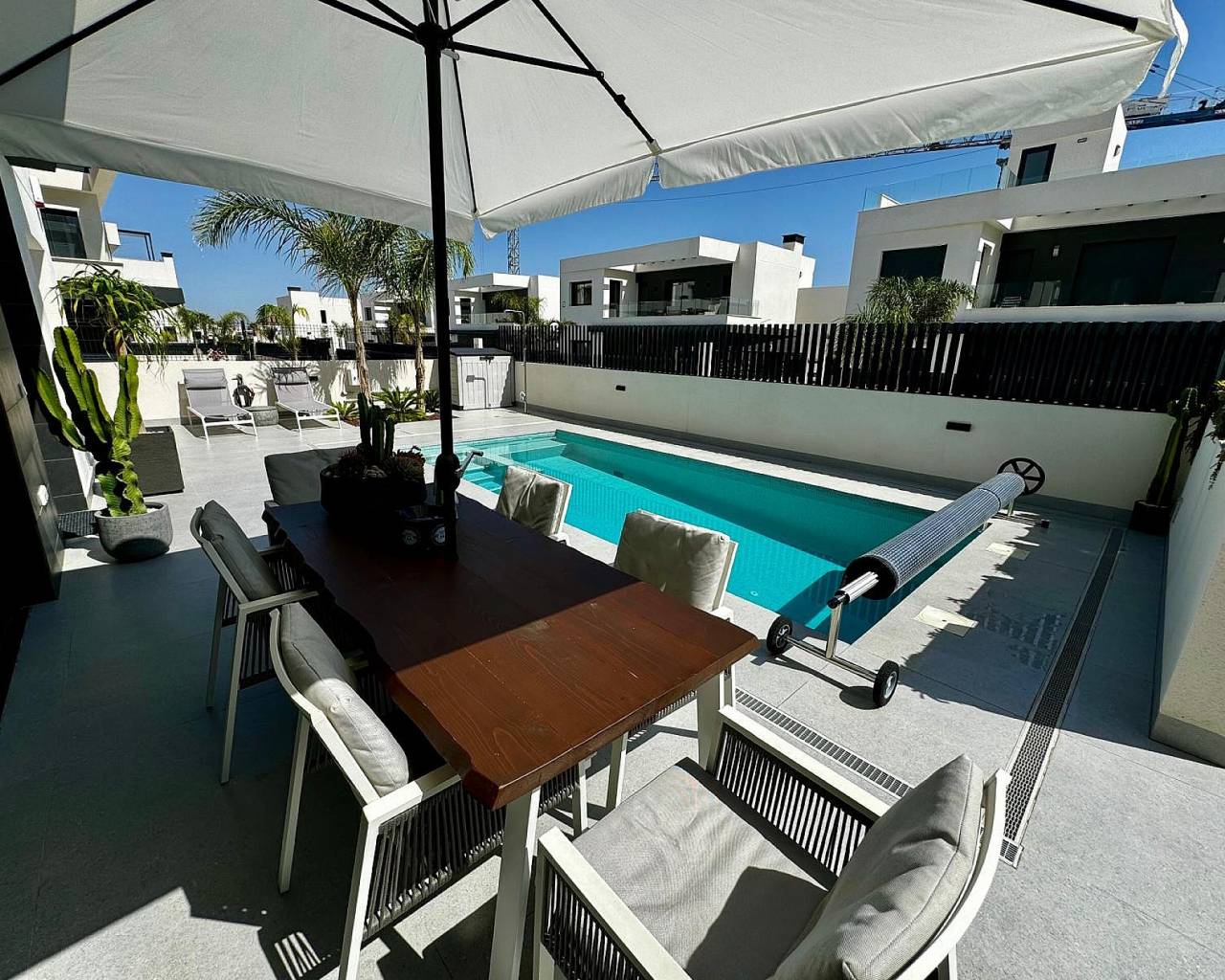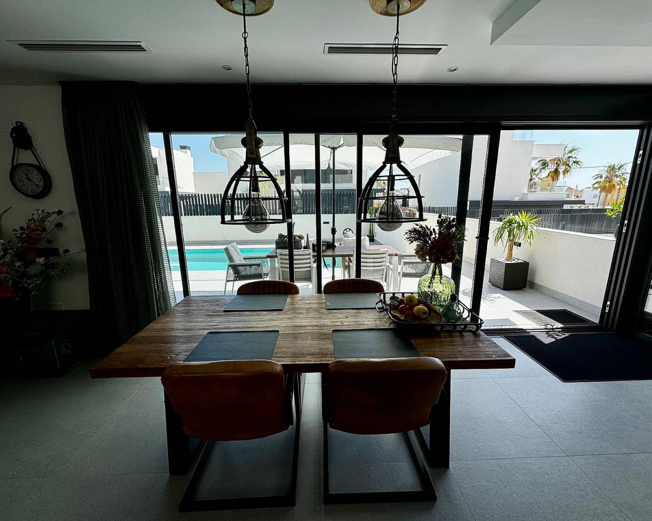Prachtige villa met 4 slaapkamers en 3 badkamers. Wij bieden deze geweldige datavilla te koop aan; deze villa is nog geen 2 jaar oud en heeft een bebouwde oppervlakte van 197m2 en staat op een perceel van 236m2. De villa beschikt over drie/vier slaapkamers en drie badkamers. Dit is een fantastische kans op een geweldige locatie, op slechts 3 minuten lopen van alle lokale voorzieningen en ongeveer 15 minuten rijden naar het strand. Als u door de buitenpoort loopt en de trap op gaat, heeft u aan uw rechterhand een fantastisch privézwembad en aan uw linkerkant heeft u toegang tot de ondergrondse parkeergarage/garage. Het lager gelegen terras loopt over de volledige lengte van de voorkant van de villa en biedt voldoende ruimte rond het zwembad om te ontspannen en bij te bruinen. Bij het betreden van het pand via de hoofdingang aan uw linkerhand heeft u de woonkamer, die veel natuurlijk licht heeft, omdat er glazen schuifdeuren zijn die toegang bieden tot het zwembad en het terras, wat een vrijwel naadloze overgang creëert van de binnenruimte. naar buiten. Het woongedeelte heeft aan de rechterkant een trap die zowel naar beneden als naar boven toegang geeft. Terwijl je door het woongedeelte loopt, hebben de huidige eigenaren een zithoek gecreëerd om te ontspannen en een eethoek voor als je familie of vrienden op bezoek hebt. Aan het uiteinde heb je de keuken, die goed is ontworpen en uitgerust met hoogwaardige apparatuur. Er is een eilandwerkblad dat een natuurlijke scheiding biedt tussen de keuken en de woonkamer, plus een bijkeuken waar de boiler en de wasmachine staan. Als u terugloopt door de woonkamer naar het uiteinde, heeft u een toilet/garderobe, gevolgd door de eerste slaapkamer met kledingkasten en een eigen en-suite badkamer met douche. Als u de slaapkamer uitloopt en de trap naar beneden neemt, is er aan uw linkerhand een kamer met kasten, die gebruikt zou kunnen worden als extra slaapkamer of als speelkamer, de keuze is aan u! Als u verder rondloopt, heeft u de ingang van een dubbele garage, het lagere niveau biedt een geweldige ruimte die naar eigen wens kan worden ingedeeld. Als je terugloopt naar de trap en omhoog gaat via de begane grond en naar de eerste verdieping, heb je nog twee slaapkamers van behoorlijke grootte. Elke slaapkamer heeft inbouwkasten, een eigen badkamer met douche en toegang tot het bovenste terras. Als u het terras oploopt, heeft u aan uw linkerhand een zitgedeelte met voldoende ruimte voor ligbedden. Als u verder naar de andere kant van het terras loopt, heeft u een groter gebied, met een buitencateringgedeelte om te koken als u vrienden in de buurt heeft voor een barbecue. De eigenaren hebben een tello geïnstalleerd die voor wat schaduw zorgt, en zonnepanelen op de bovenkant, waardoor uw elektriciteitsrekening wordt verlaagd en tegelijkertijd het milieu wordt ontzien. De villa ligt op minder dan 3 minuten lopen van alle lokale voorzieningen, zoals restaurants, winkels en bars. Als je nog nooit van Algorfa hebt gehoord, dan mis je iets in je leven! Want Algorfa is een van de meest kosmopolitische stadjes aan de Costa Blanca, zo niet in heel Spanje. De omliggende heuvels bieden een panoramisch uitzicht over de campo, ervan uitgaande dat je de energie hebt om te klimmen, en het stadje is meestal stil genoeg om de vogels te horen zingen en de krekels te horen doen wat ze doen. Er zijn ook een aantal geweldige wandelingen en trektochten in de omgeving, variërend van een rustige wandeling tot de uitdagende 11 km lange Caldera de Gigante (de ketel van de reus) trektocht, die toegankelijk is vanaf het Hotel Algorfa, Montemar. Mensen zijn vaak verbaasd over de keuze aan eetgelegenheden en winkelervaringen rond Algorfa. Ons stadje heeft gastronomisch gezien een grote punch, met alles van snacks tot driegangenmenu's del dia en menu's de la noche. We kunnen de hele dag praten over wat er zo geweldig is aan Algorfa, maar we zouden liever willen dat je het zelf komt ontdekken. Kom snel langs en als u overweegt om naar Spanje te verhuizen, overweeg dan Algorfa. Het is een geweldige plek om te wonen, met veel te zien en te doen en een vriendelijk gezicht op elke hoek.