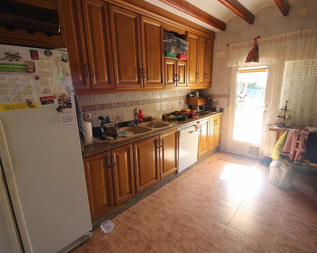 Groot vrijstaand huis met 9 slaapkamers in de stad, ideaal voor zaken. Groot vrijstaand huis in de stad, in Monovar, Alicante. Het heeft een oppervlakte van 400m² en een perceelsgrootte van 4000m². Het huis is verdeeld over twee verdiepingen en kan gemakkelijk worden opgedeeld in onafhankelijke woonruimtes, ideaal voor verhuur of zaken. Er is ook een groot zwembad dat in tweeën zou worden gesplitst. Buiten is ook een caport, een enorme werkplaats en garage, en een bijkeuken. Binnen zijn 4 slaapkamers en 2 badkamers beneden, en nog 5 slaapkamers boven en 2 badkamers. Verder zijn er twee keukens, diverse salons, een fitnessruimte (gerekend als slaapkamer) een open haard, airconditioning en een terras. Op loopafstand van winkels, supermarkten, bars, restaurants, scholen en vele diensten en voorzieningen. Leidingwater en elektriciteit. Monovar is een uitstekende plek om een pauze te nemen van de stressvolle stad, het is een zeer rustige stad met iets meer dan 12.000 inwoners. De mensen hier zijn erg beleefd en vriendelijk, altijd bereid om te helpen. De stad heeft verschillende supermarkten (Mercadona, Hiperber...) die gemakkelijk te bereiken zijn en open zijn van maandag tot zaterdag, een wekelijkse markt en een goed 24-uurs medisch centrum. Er zijn verschillende parken waar u uw kinderen kunt meenemen, en een goede keuze aan pubs om iets te drinken en restaurants waar u lokale en mediterrane gerechten kunt proberen. In Monovar is ook een overdekt zwembad dat het hele jaar geopend is, met een spa en sauna, evenals een fitnessruimte met personal trainers, zumbalessen, spinning, yoga enz. Monovar ligt op slechts 30 minuten van de stad Alicante, de luchthaven en stranden. In september viert Monovar zijn lokale feesten met veel evenementen waar iedereen welkom is. De stad Elda & Petrer ligt op minder dan 10 minuten rijden, met een groot ziekenhuis met Engels sprekende artsen, een enorm scala aan bars en restaurants, overdekt winkelcentrum, grote internationale sportschool, Carrefour, Aldi, Lidl, bioscoop met Engels wekelijks vertoonde films, bowling- en fastfoodrestaurants.
