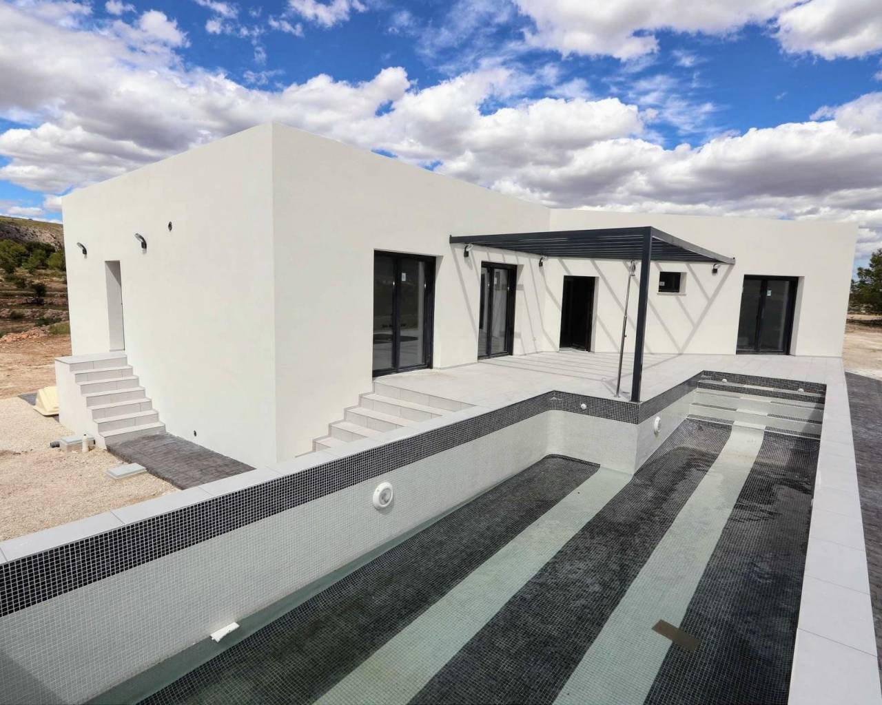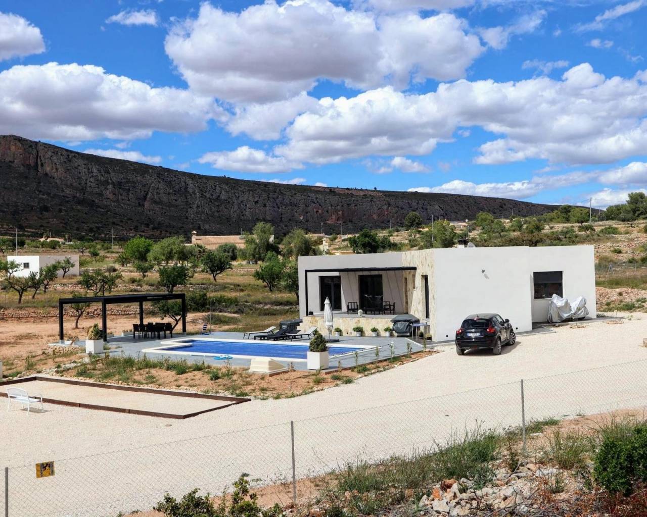 Nieuwbouw villa 4 slaapkamers en 8m zwembad. Eindelijk een droomhuis voor een echte prijs. Een kans om als eerste eigenaar te zijn van een eigentijdse en moderne Spaanse villa. Hondon nieves - aspe Dit is een gloednieuw gebouw op een prachtig perceel van 10.000 m2 en er is een modelwoning beschikbaar om te bezichtigen. De bouwtijd bedraagt ongeveer 7-9 maanden. De bouwer heeft per direct bouwkavels beschikbaar, die allemaal een adembenemend uitzicht hebben op het zonovergoten Spaanse platteland Prijs is voor percelen in La Romana zonder zwembad Met een geschatte grootte van 145 vierkante meter, open woonkamer + keuken, 4 slaapkamers, 2 badkamers, voor- en achterterras, en 2 verschillende gevelafwerkingen naar keuze. • Aliso Basismodel: Vanaf € 310.924 (zonder zwembad) / € 334.924 (Zwembad & Terras) • Aliso + Garage: Vanaf 379.670€ (inclusief 5x6 Garage + zwembad + Aansluitingsterras) Prijs is voor La Romana, Aspe plus € 55.000 Met 4 slaapkamers en 2 badkamers leidt de open woon-/eetkamer naar een nieuwe keuken die naar uw voorkeur wordt ingericht. Aspe is een stad en gemeente in de provincie Alicante, Spanje. De stad ligt in de vallei van de rivier Vinalopó, . Het is een charmant stadje, in een landelijk gebied omringd door bergen, wijngaarden, olijven en amandelen, maar het ligt ook op slechts een paar minuten rijden van de bruisende steden Elche (12 km) en Alicante (25 km). De luchthaven van Alicante en de stranden van de Costa Blanca liggen op slechts 22 km afstand. De economie van Aspe is gebaseerd op de textiel- en schoenenindustrie, evenals op landbouw. Aspe is ook beroemd om de teelt van een speciaal soort druif, die traditioneel om middernacht wordt gegeten, elke oudejaarsavond, in heel Spanje.