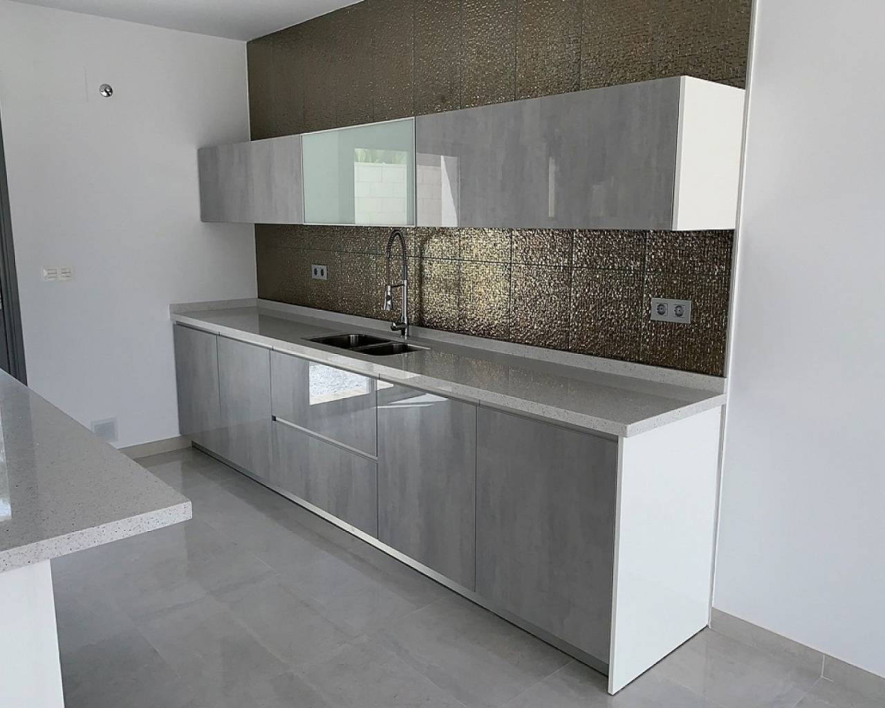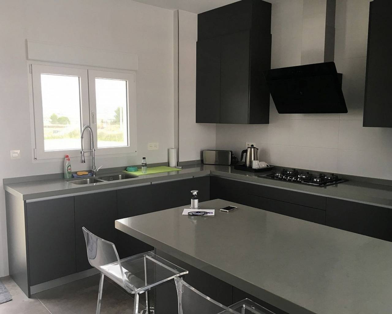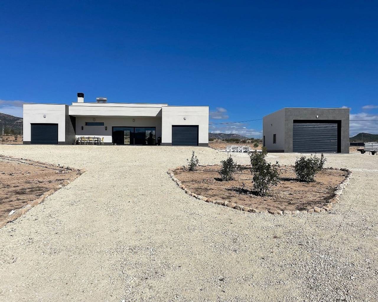 Moderne villa's met 3 slaapkamers in Pinoso - sleutelklaar in 8 maanden. Deze prachtige landhuizen zijn aangepast aan de persoonlijke smaak van elke klant. Het model op deze foto's heeft een extra gastenverblijf van 30 m² en de klanten hebben later een barbecue en zomerkeuken toegevoegd.