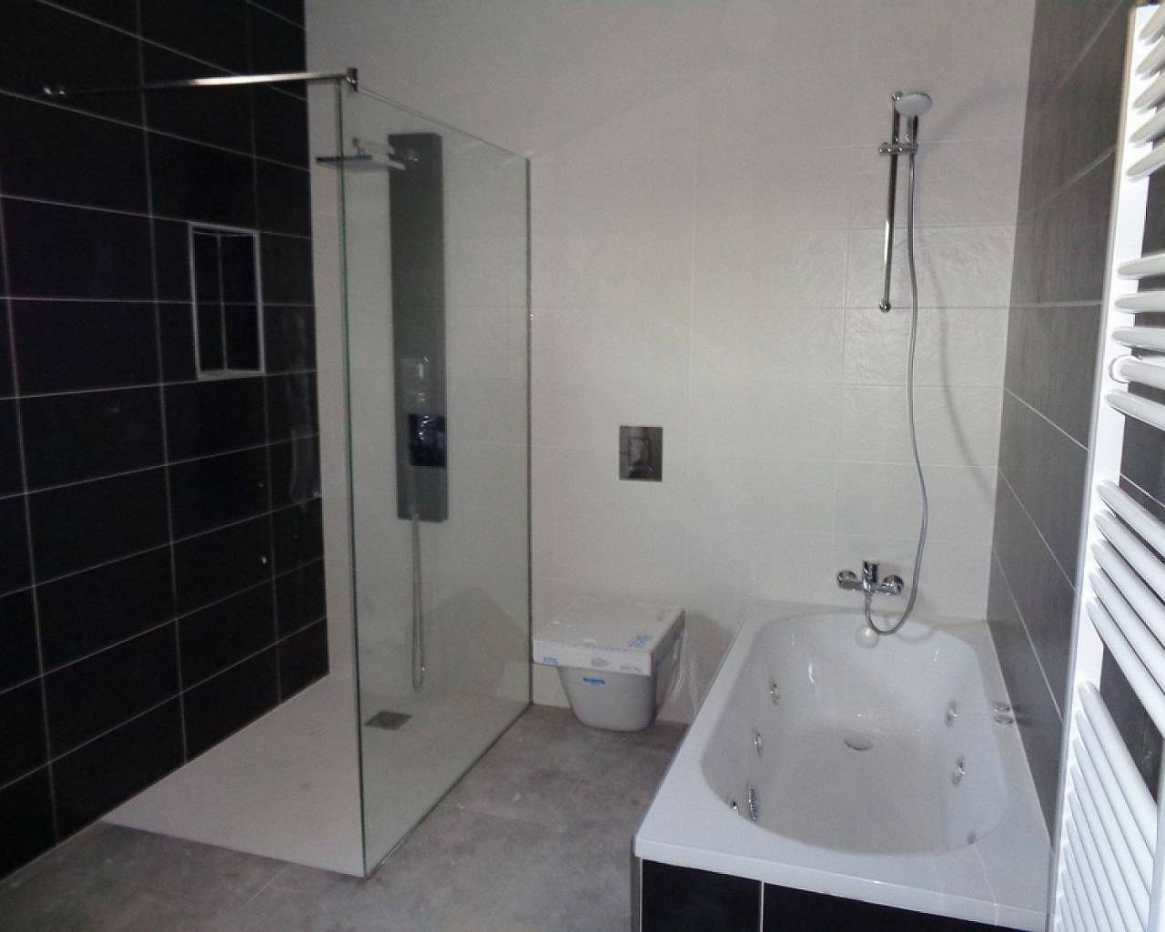 De badkamers zijn voorzien van een douchekolom, douchebak of bad, wastafels (keuze uit verschillende kleuren) met wastafels, kranen en spiegels, plus een grote keuze aan wandtegels.