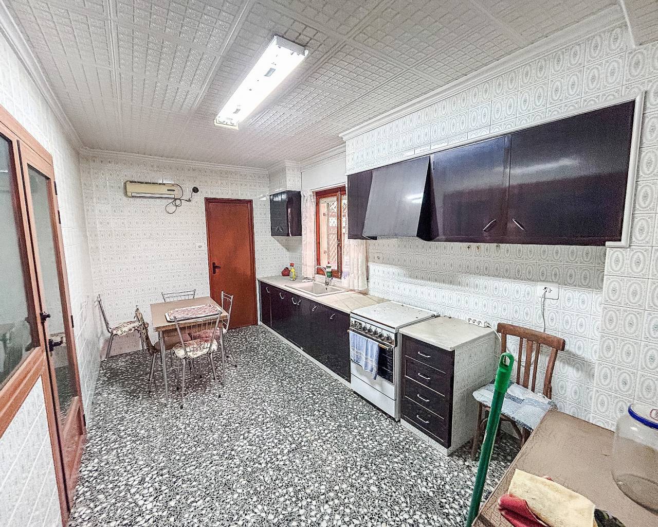 Gebouw met 2 verdiepingen en terrein in Monovar. Gebouw te koop in Monóvar – €199.990 Dit drie verdiepingen tellende gebouw in Monóvar is nu op de markt en combineert woonruimtes met een begane grond die als garage of lokaal kan worden gebruikt. Het biedt meerdere mogelijkheden, zowel voor investeringen als voor privégebruik. Het pand, gebouwd in 1975 en uitgebreid in 1986, heeft een totale oppervlakte van circa 360 m², verdeeld over een garage en twee zelfstandige appartementen, met terras en dakterras (solarium). Begane grond – Garage en lokaal Oppervlakte: 110 m². Open ruimte met capaciteit voor meerdere voertuigen. Extra gedeelte in gebruik als berging. Directe toegang vanaf de straat via een handmatige garagedeur. Eerste verdieping – Appartement te renoveren Oppervlakte: circa 125 m². Dit is de verdieping die de meeste renovatie en modernisering vereist. Indeling: drie slaapkamers, één badkamer, een kantoor, woonkamer met geïntegreerde keuken, voorraadkast en een gastentoilet in de keuken. Voorzien van airconditioning. Het aanwezige meubilair is bij de verkoop inbegrepen. Tweede verdieping – Appartement in goede staat Oppervlakte: circa 125 m². Gebouwd in 1986 en in betere staat van onderhoud. Indeling: woon-eetkamer, keuken met toilet, wasruimte en voorraadkast, drie slaapkamers en een familiebadkamer in de gang. Een deel van het meubilair is bij de verkoop inbegrepen. Extra’s en buitenruimtes Hoofdterras met gerenoveerde gevel en ramen. Alarmsysteem geïnstalleerd. Dakterras (solarium) met panoramisch uitzicht over het dorp Monóvar en de omliggende bergen. De omgeving van Monóvar Monóvar is een stad in de provincie Alicante met een uitgesproken mediterraan karakter, bekend om zijn geschiedenis, tradities en natuurlijke omgeving. De stad biedt alle essentiële voorzieningen, zoals scholen, gezondheidscentra, supermarkten en een breed scala aan culturele en gastronomische mogelijkheden. Dankzij de goede wegverbindingen is Monóvar gemakkelijk bereikbaar vanaf de stad Alicante, de luchthaven en de stranden van de Costa Blanca, die allemaal op minder dan 30 minuten rijden liggen. De ligging combineert de charme van een rustige stad met de nabijheid van grotere stedelijke centra, waardoor dit een ideale plek is voor zowel permanente bewoning als investering.