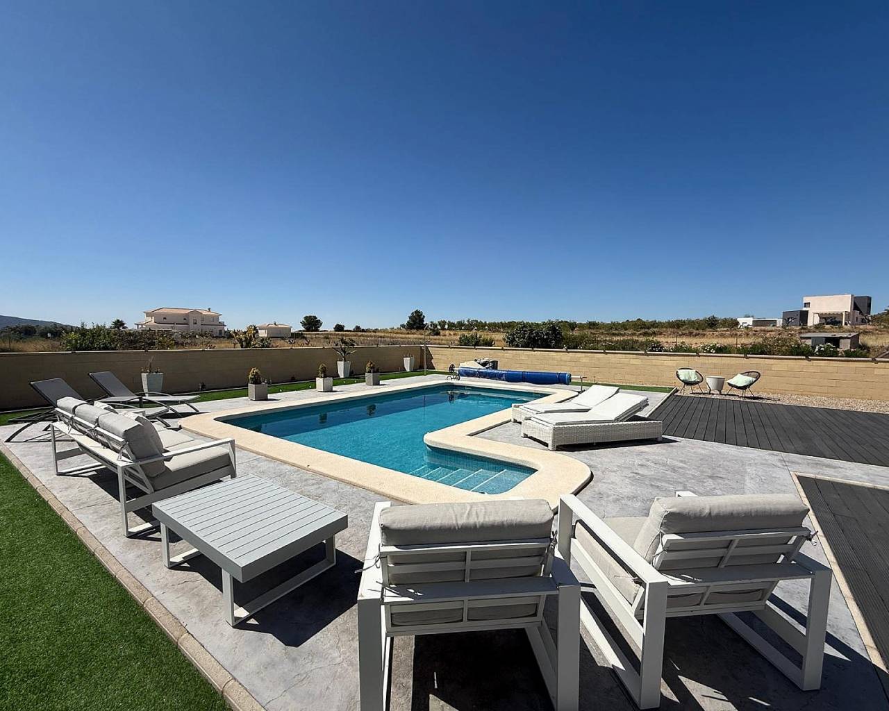 Prachtige villa met 3 slaapkamers en 3 badkamers in Pinoso (sleutelklaar).. Met trots presenteren wij u deze prachtige villa met 3 slaapkamers en 3 badkamers in Pinoso, een verwarmd zoutwaterzwembad en een spectaculair uitzicht. Wauw, wat een huis! Deze prachtig ontworpen villa combineert elegantie, comfort en moderne voorzieningen in één perfect pakket. Gelegen op een rustige locatie met adembenemend uitzicht, biedt deze woning alles wat u nodig heeft voor uw droomleven in Spanje. U betreedt deze woning met een uitnodigende veranda en zithoek, die uitkomt op een lichte hal en een grote open leefruimte met een designkeuken, volledig uitgerust met hoogwaardige apparatuur, prachtige afwerkingen en een kookeiland, ideaal om gasten te ontvangen. Er zijn 3 smaakvol ingerichte slaapkamers, waarvan de hoofdslaapkamer een en-suite badkamer en een balkon met uitzicht op het prachtige landschap heeft. De andere twee badkamers hebben een prachtige, stijlvolle afwerking en bieden comfort en functionaliteit. Buiten vindt u meerdere zitgedeeltes met uitzicht op het prachtige verwarmde zoutwaterzwembad vanVerwarmd zoutwaterzwembad van 8 x 4 meter, voorzien van een zonne-energie-afdekking. Er is voldoende ruimte om uw droomkeuken of barbecueplek te creëren en de mogelijkheid tot uitbreiding, bijvoorbeeld een garage of een casita voor gasten. Het terrein heeft een prachtige fruitboomgaard en bij de ingang van het perceel zijn er elektrische poorten met een asfaltweg die naar het perceel leidt. Naast deze fantastische woning, en voor extra energiezuinigheid, is er een 7 kW zonne-energiesysteem plus netstroom, drinkwater en irrigatiewater. Deze villa is instapklaar, dus u kunt er meteen intrekken en uw droomleven in de mediterrane stijl beleven. De locatie is rustig en op korte rijafstand van lokale voorzieningen, bars en restaurants in het opkomende stadje Pinoso. Wat wilt u nog meer, deze villa heeft het echt allemaal. Wees er snel bij, want deze villa zal niet lang meer te koop staan, dus boek snel uw bezichtiging en ontdek zelf wat een pareltje deze prachtige woning is. Over Pinoso. Pinoso heeft alle voorzieningen die u nodig heeft: supermarkten zoals Consum, Dia, Mas y Mas en Hiperber, een breed scala aan restaurants, waaronder Ierse en Indiase restaurants, bars (50+), een 24-uurs medisch centrum, Engelssprekende tandartsen, een dierenarts, winkels, bars, restaurants, enz. en een wekelijkse markt op zaterdag en een overdekte markt die 6 dagen per week geopend is. Pinoso heeft 3 basisscholen, een middelbare school en een muziekschool. Er is ook een nieuw cultureel centrum met een bibliotheek en Spaanse lessen die toegankelijk zijn voor buitenlanders. Het is een van de rijkste steden van Spanje, met een marmermijn, een bloeiende schoenindustrie, zoutlagen en een bloeiende wijn- en landbouwsector. De stad ligt in het bergachtige landschap van de wijnstreek Alicante, op 45-50 minuten rijden van de luchthaven van Alicante, de stad en de stranden, en dicht bij de grens met Murcia. De stad Elda & Petrer ligt op 20 minuten rijden en heeft een groot ziekenhuis met Engelssprekende artsen, een breed scala aan bars en restaurants, een overdekt winkelcentrum, een grote internationale sportschool, Carrefour, Aldi, Lidl, een bioscoop met wekelijks Engelstalige films, bowlingbanen en fastfoodrestaurants. Het hele jaar door organiseert Pinoso zijn traditionele Spaanse feesten met parades en muziekoptredens die in het hele land bekend zijn, vreugdevuren met een magische sfeer en waarbij mensen de straat op gaan. Er is ook een jaarlijkse stierenrennen (de stieren worden niet mishandeld!), die menigten uit de hele regio trekt om de dappere deelnemers te zien die zich bij de stieren voegen in de speciale arena.