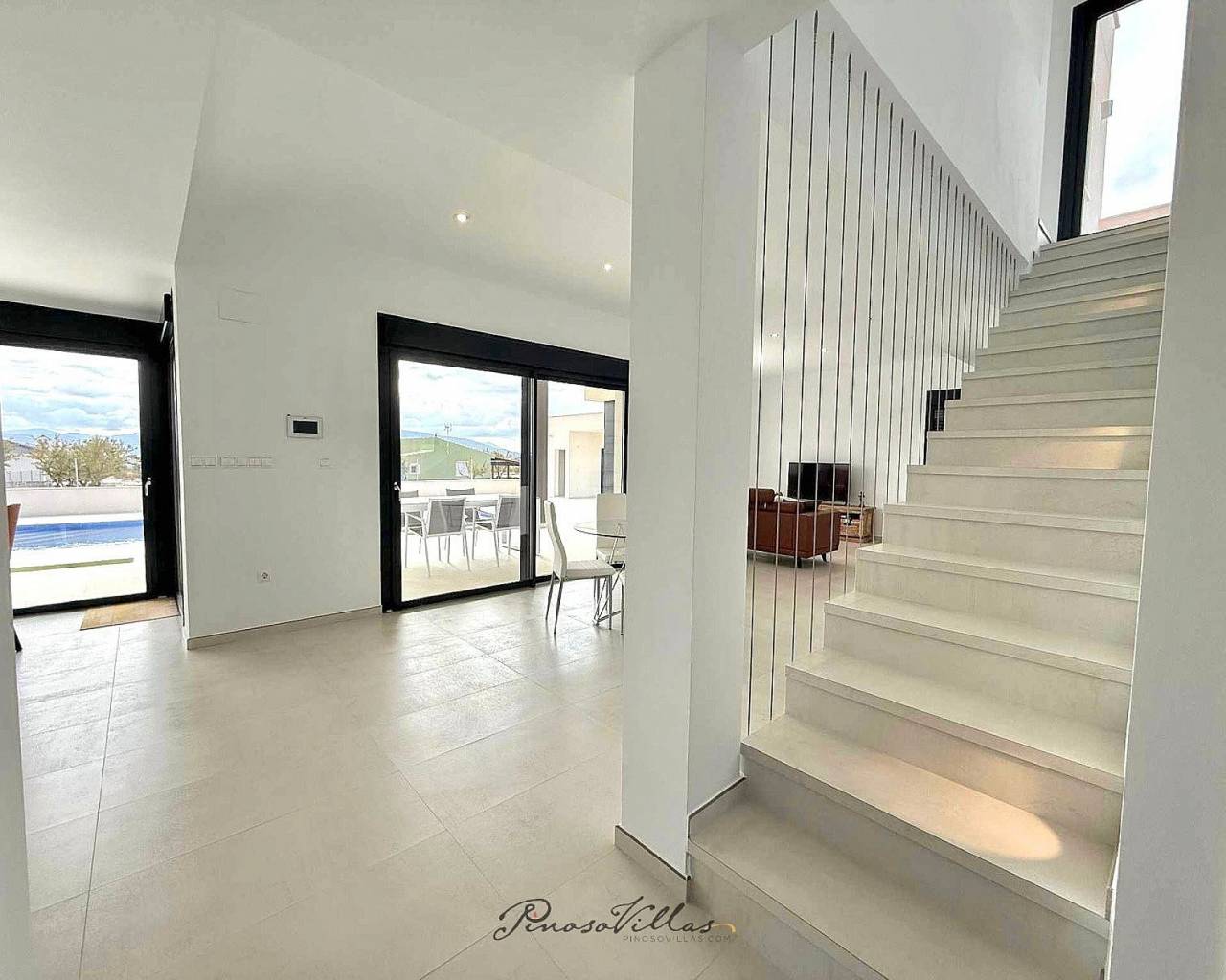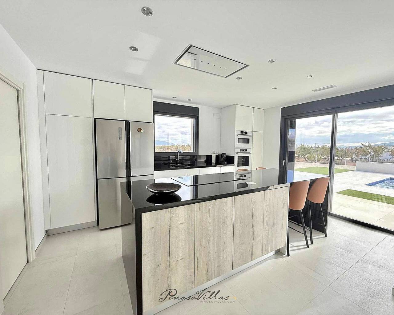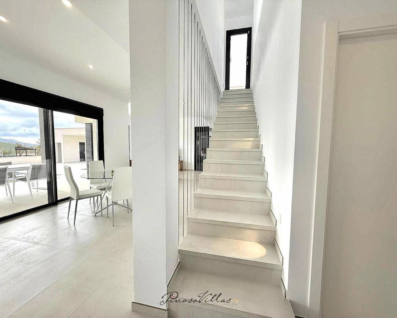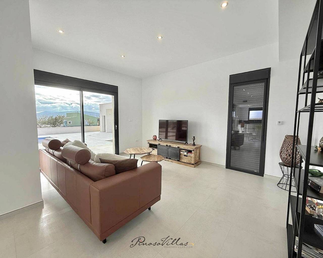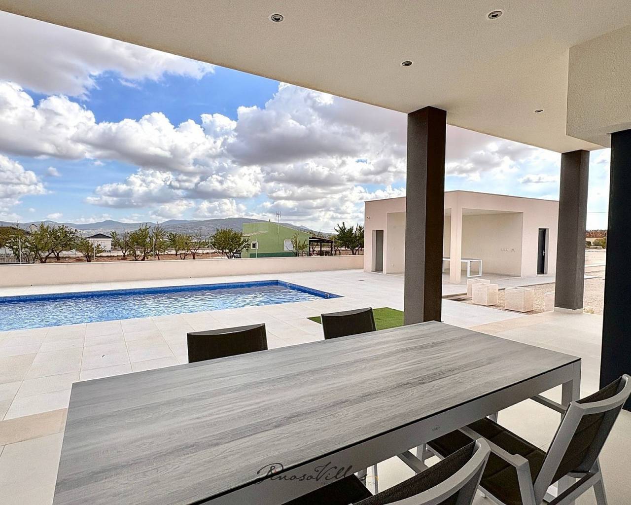 Prachtige nieuwbouwvilla met 3 slaapkamers en 3 badkamers in Pinoso.. Met genoegen presenteren wij u deze prachtige nieuwbouwvilla met 3 slaapkamers en 3 badkamers in Pinoso. Deze prachtige nieuwbouwvilla in Pinoso biedt modern comfort, stijl en een prachtige omgeving. Met warme en uitnodigende leefruimtes is deze woning ontworpen voor zowel ontspanning als entertainment. Binnen vindt u drie ruime slaapkamers, waaronder een hoofdslaapkamer met een eigen badkamer en inloopkast. De hoofdbadkamer is elegant afgewerkt en heeft een strakke en moderne uitstraling. De moderne keuken is voorzien van een kookeiland, perfect voor entertainment, en een grote bijkeuken voor extra gemak. De lichte en ruime woonkamer kijkt uit op het zwembad en biedt een adembenemend uitzicht op de bergen. De villa is uitgerust met airconditioning en vloerverwarming, zodat u elke kamer individueel kunt regelen voor maximaal comfort. Boven biedt een groot balkon een spectaculair uitzicht op het omliggende landschap, terwijl het terras op de begane grond uitkomt op het mooie zwembad, ideaal om te ontspannen of vrienden te ontvangen. Buiten vindt u een royaal perceel dat u naar eigen wens kunt inrichten met bomen, tuinen of zelfs een moestuin. Het perceel beschikt tevens over elektrische poorten, irrigatiewater met de mogelijkheid om aan te sluiten op het waterleidingnet, dat zich boven op het perceel bevindt. Er is een ruime garage voor voertuigen en opslag. Er is ook een buitentoilet voor extra gemak, grenzend aan een overdekte zithoek die eenvoudig kan worden omgebouwd tot een buitenkeuken, volledig uitgerust met elektrische installatie, een geweldige extra. Deze woning heeft zoveel te bieden: stijlvol, functioneel en omgeven door natuurschoon. Boek vandaag nog een bezichtiging om de kwaliteit, het comfort en het uitzicht van deze villa echt te waarderen. Over Pinoso. Pinoso heeft alle voorzieningen die u nodig heeft: supermarkten zoals Consum, Dia, Mas y Mas en Hiperber, een breed scala aan restaurants, waaronder Ierse en Indiase restaurants, bars (50+), een 24-uurs medisch centrum, Engelssprekende tandartsen, dierenarts, winkels, bars, restaurants, enz. Er is een wekelijkse markt op zaterdag en een overdekte markt die 6 dagen per week geopend is. Pinoso heeft 3 basisscholen, een middelbare school en een muziekschool. Er is ook een nieuw cultureel centrum met een bibliotheek en Spaanse lessen die toegankelijk zijn voor buitenlanders. Het is een van de rijkste steden van Spanje, met een marmermijn, een bloeiende schoenindustrie, zoutlagen en een bloeiende wijn- en landbouwsector. De stad ligt in het bergachtige landschap van de wijnstreek Alicante, op 45-50 minuten rijden van de luchthaven van Alicante, de stad en de stranden, en dicht bij de grens met Murcia. De stad Elda & Petrer ligt op 20 minuten rijden en heeft een groot ziekenhuis met Engelssprekende artsen, een breed scala aan bars en restaurants, een overdekt winkelcentrum, een grote internationale sportschool, Carrefour, Aldi, Lidl, een bioscoop met wekelijks Engelstalige films, bowlingbanen en fastfoodrestaurants. Het hele jaar door organiseert Pinoso zijn traditionele Spaanse feesten met parades en muziekoptredens die in het hele land bekend zijn, vreugdevuren met een magische sfeer en momenten waarop mensen de straat op gaan. Jaarlijks vindt er ook een stierenrennen plaats (de stieren worden niet verwond!). Deze trekt veel mensen uit de hele regio die komen kijken hoe de dappere deelnemers zich bij de stieren voegen in de speciale arena.