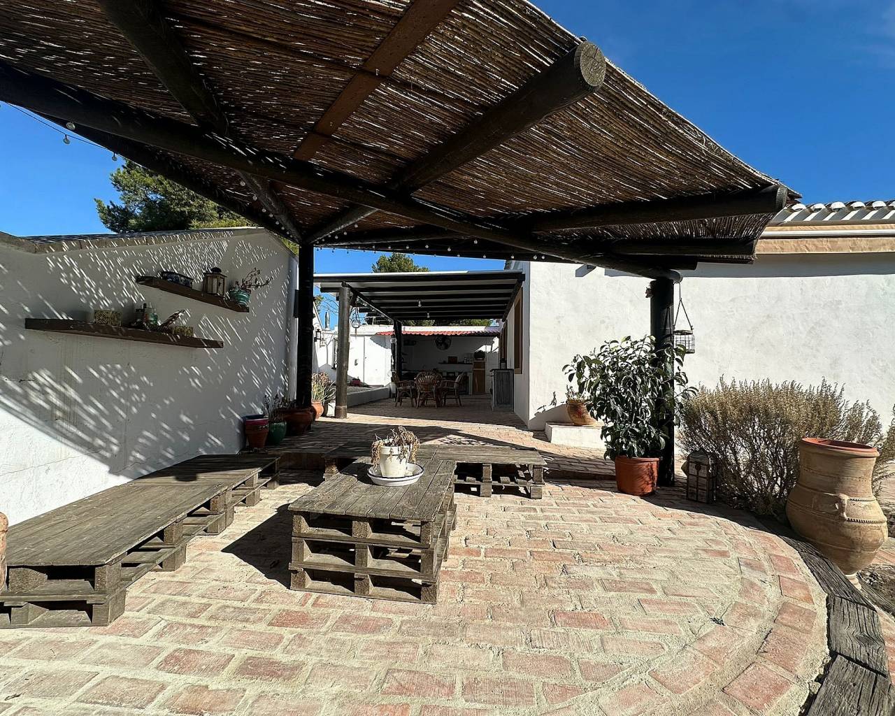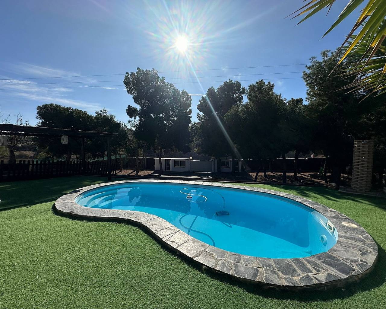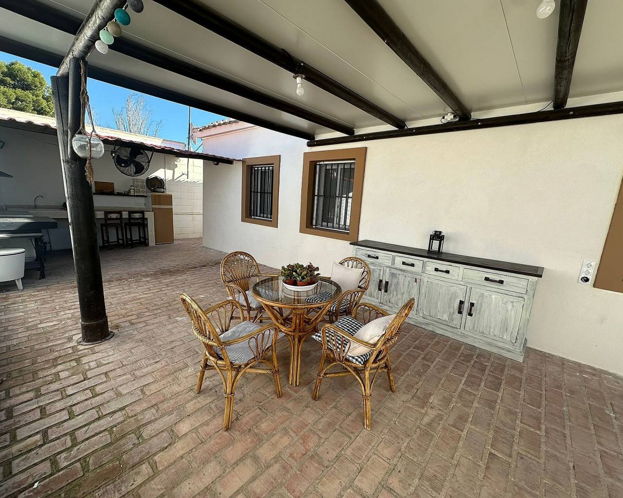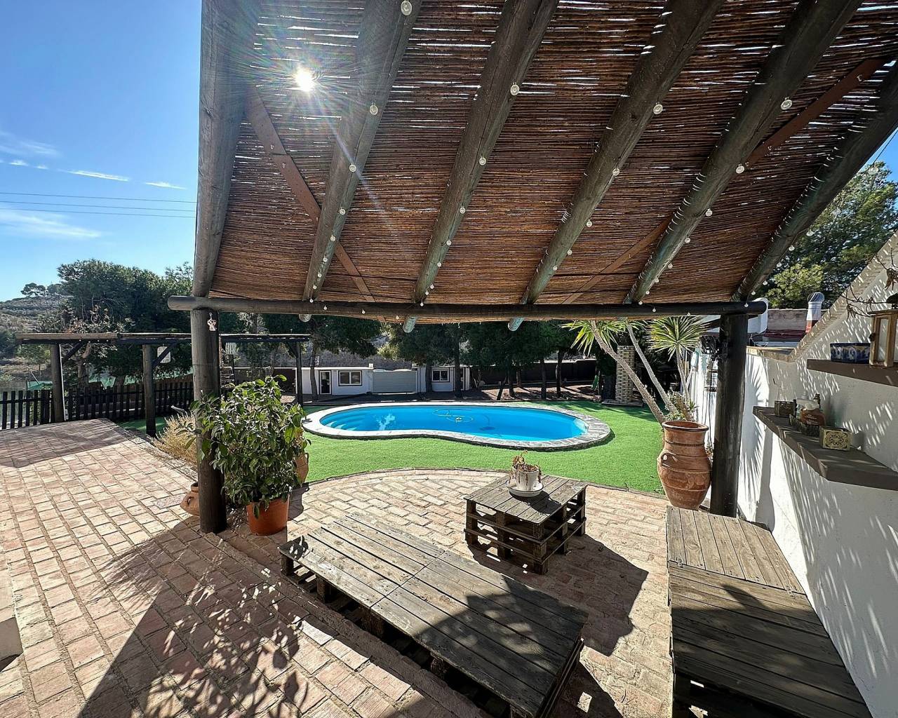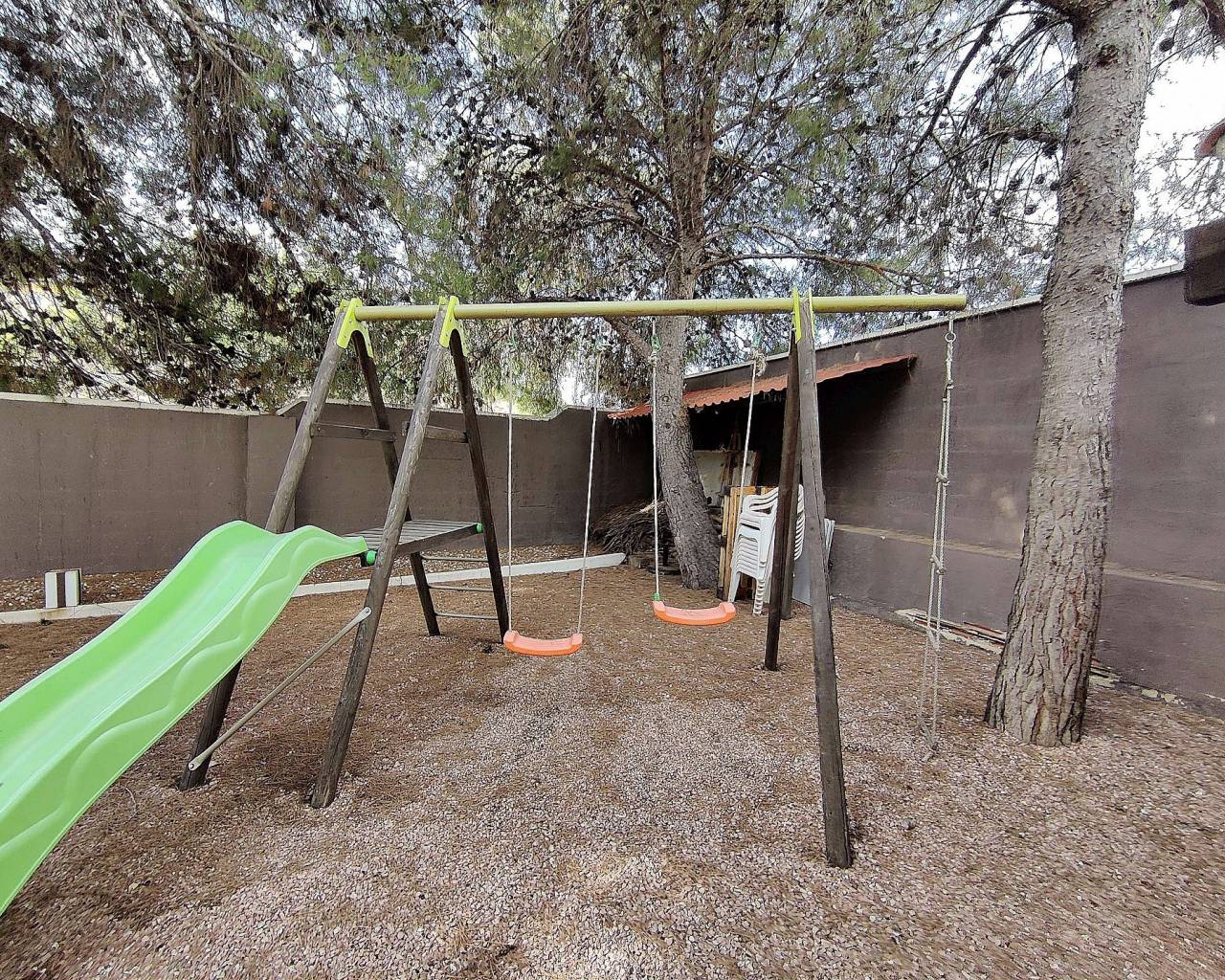 Large Detached Villa walking distance to Monovar. Detached Villa walking distance to Monovar, with a size of around 100m2, 3 bedrooms and 1 bathroom, with a lounge-dining room and open plan kitchen. The plot size is 2000m2, fully enclosed with an automatic gate entrance. There is a swimming pool, a 45m2 summer kitchen by the pool with a bathroom, open barbecue area, two storage rooms, a childrens play room and various seating areas. The garden has big pine trees ideal for shade in the summer. Fully reformed villa ready to move in Monovar is a small town in Alicante province, with a population of over 13,000 people. It is about 15 km from Pinoso and famous for its marble quarries, shoe making and wine. It is in a pretty, mountainous area, the town stands at a height of 341m (1,119 ft). Monovar has several traditional fiestas during the year, ranging from “Dwarves and Giants' ' in July to the week-long town fiesta in September in honour of the Virgen de los Remedios. Like many towns in the area, traditional food includes rice dishes made with rabbit and snail, gazpacho manchego – a hearty rabbit stew, migas – fried breadcrumbs with garlic and usually chorizo and of course the local red wine. There are 4 bodegas close by. The modern day town has many bars and restaurants, small shops, a large supermarket, bullring, two wineries, a theatre/concert hall and a cultural centre. Monovar is a safe and friendly place to live and makes an interesting day visit. It is located on the CV83, the main road that runs from Elda to Pinoso.
