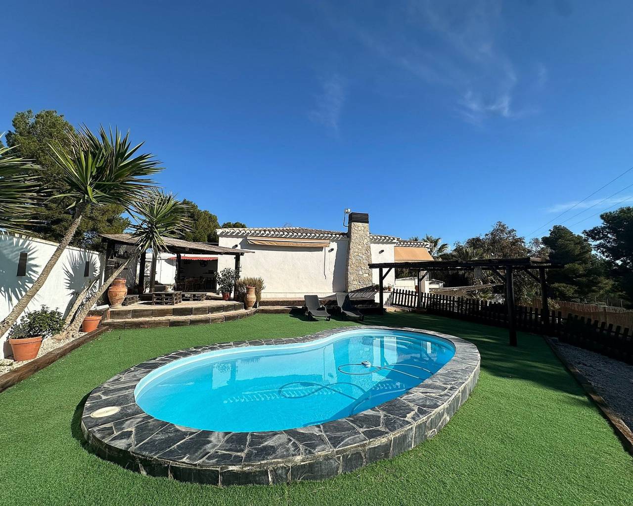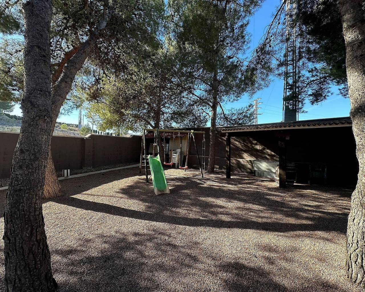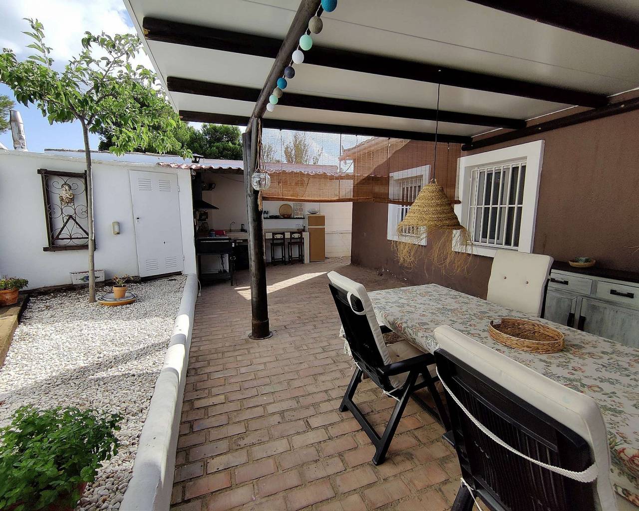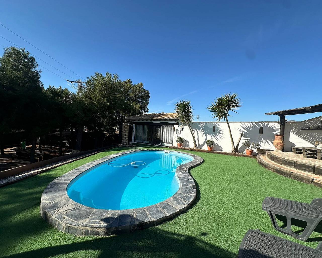 Large Detached Villa walking distance to Monovar. Detached Villa walking distance to Monovar, with a size of around 100m2, 3 bedrooms and 1 bathroom, with a lounge-dining room and open plan kitchen. The plot size is 2000m2, fully enclosed with an automatic gate entrance. There is a swimming pool, a 45m2 summer kitchen by the pool with a bathroom, open barbecue area, two storage rooms, a childrens play room and various seating areas. The garden has big pine trees ideal for shade in the summer. Fully reformed villa ready to move in Monovar is a small town in Alicante province, with a population of over 13,000 people. It is about 15 km from Pinoso and famous for its marble quarries, shoe making and wine. It is in a pretty, mountainous area, the town stands at a height of 341m (1,119 ft). Monovar has several traditional fiestas during the year, ranging from “Dwarves and Giants' ' in July to the week-long town fiesta in September in honour of the Virgen de los Remedios. Like many towns in the area, traditional food includes rice dishes made with rabbit and snail, gazpacho manchego – a hearty rabbit stew, migas – fried breadcrumbs with garlic and usually chorizo and of course the local red wine. There are 4 bodegas close by. The modern day town has many bars and restaurants, small shops, a large supermarket, bullring, two wineries, a theatre/concert hall and a cultural centre. Monovar is a safe and friendly place to live and makes an interesting day visit. It is located on the CV83, the main road that runs from Elda to Pinoso.