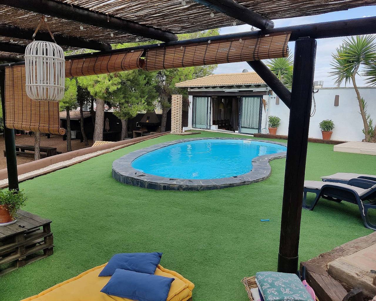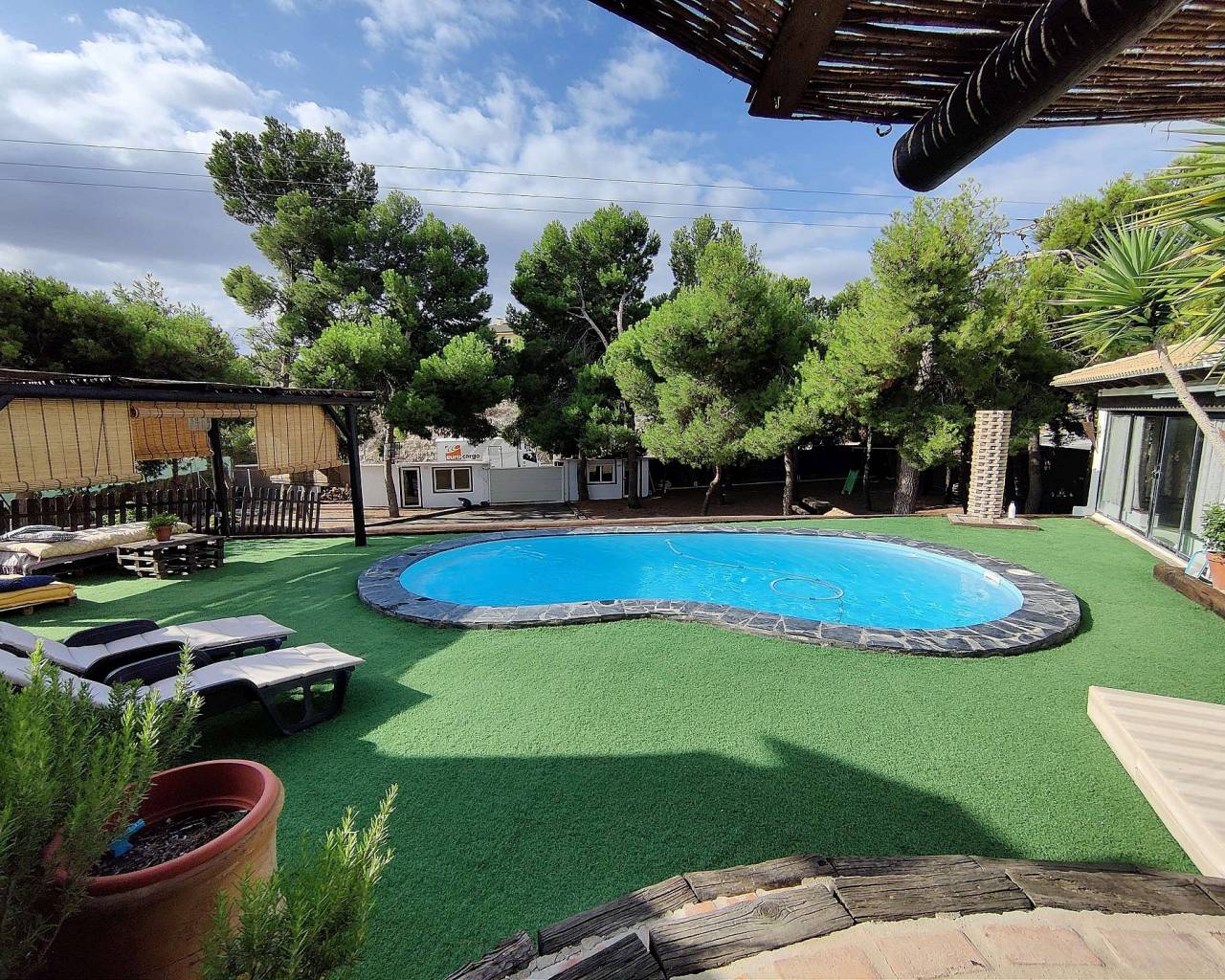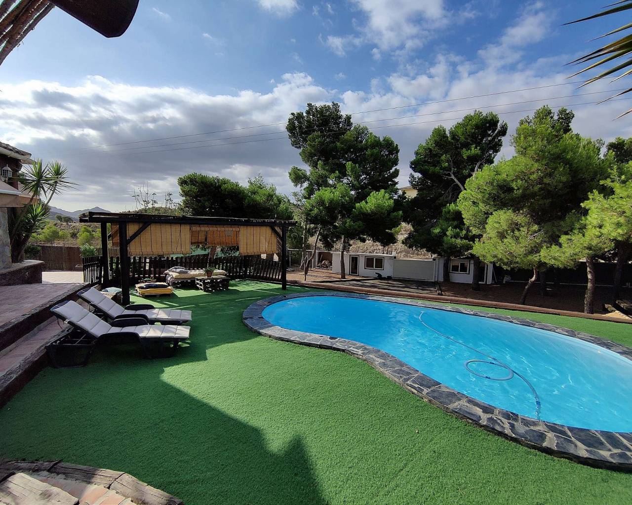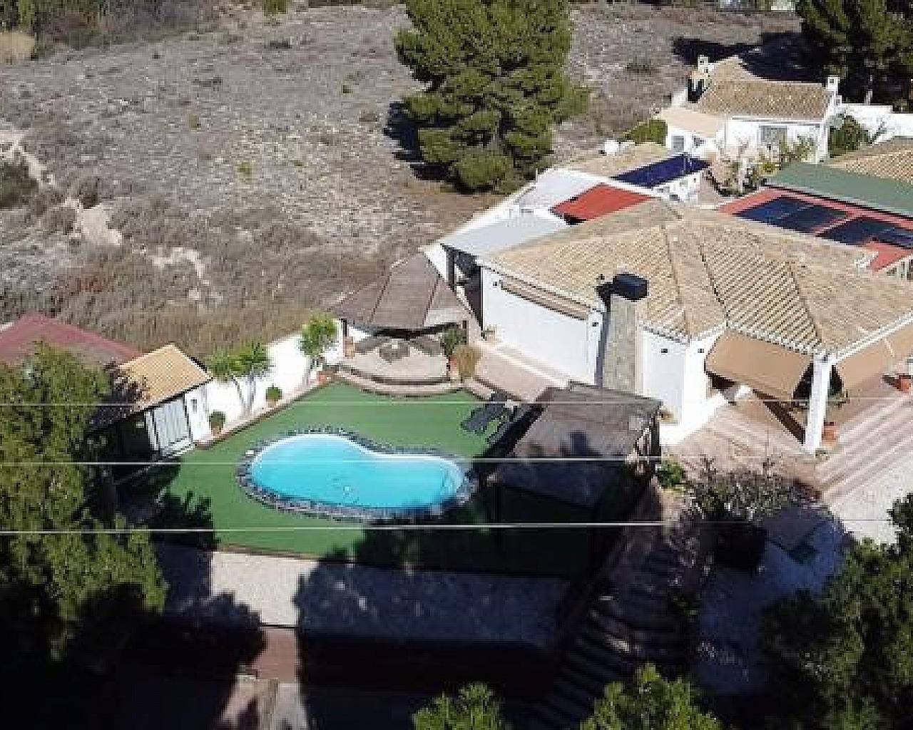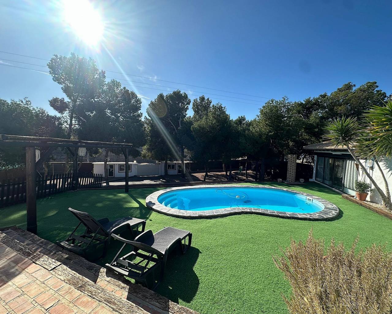 Large Detached Villa walking distance to Monovar. Detached Villa walking distance to Monovar, with a size of around 100m2, 3 bedrooms and 1 bathroom, with a lounge-dining room and open plan kitchen. The plot size is 2000m2, fully enclosed with an automatic gate entrance. There is a swimming pool, a 45m2 summer kitchen by the pool with a bathroom, open barbecue area, two storage rooms, a childrens play room and various seating areas. The garden has big pine trees ideal for shade in the summer. Fully reformed villa ready to move in Monovar is a small town in Alicante province, with a population of over 13,000 people. It is about 15 km from Pinoso and famous for its marble quarries, shoe making and wine. It is in a pretty, mountainous area, the town stands at a height of 341m (1,119 ft). Monovar has several traditional fiestas during the year, ranging from “Dwarves and Giants' ' in July to the week-long town fiesta in September in honour of the Virgen de los Remedios. Like many towns in the area, traditional food includes rice dishes made with rabbit and snail, gazpacho manchego – a hearty rabbit stew, migas – fried breadcrumbs with garlic and usually chorizo and of course the local red wine. There are 4 bodegas close by. The modern day town has many bars and restaurants, small shops, a large supermarket, bullring, two wineries, a theatre/concert hall and a cultural centre. Monovar is a safe and friendly place to live and makes an interesting day visit. It is located on the CV83, the main road that runs from Elda to Pinoso.
