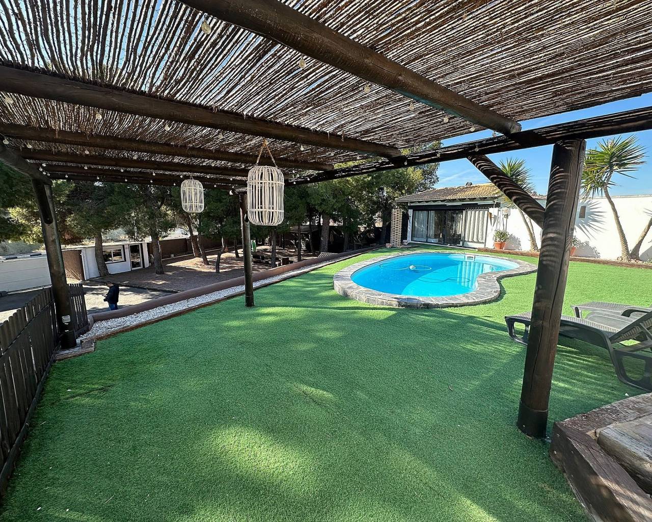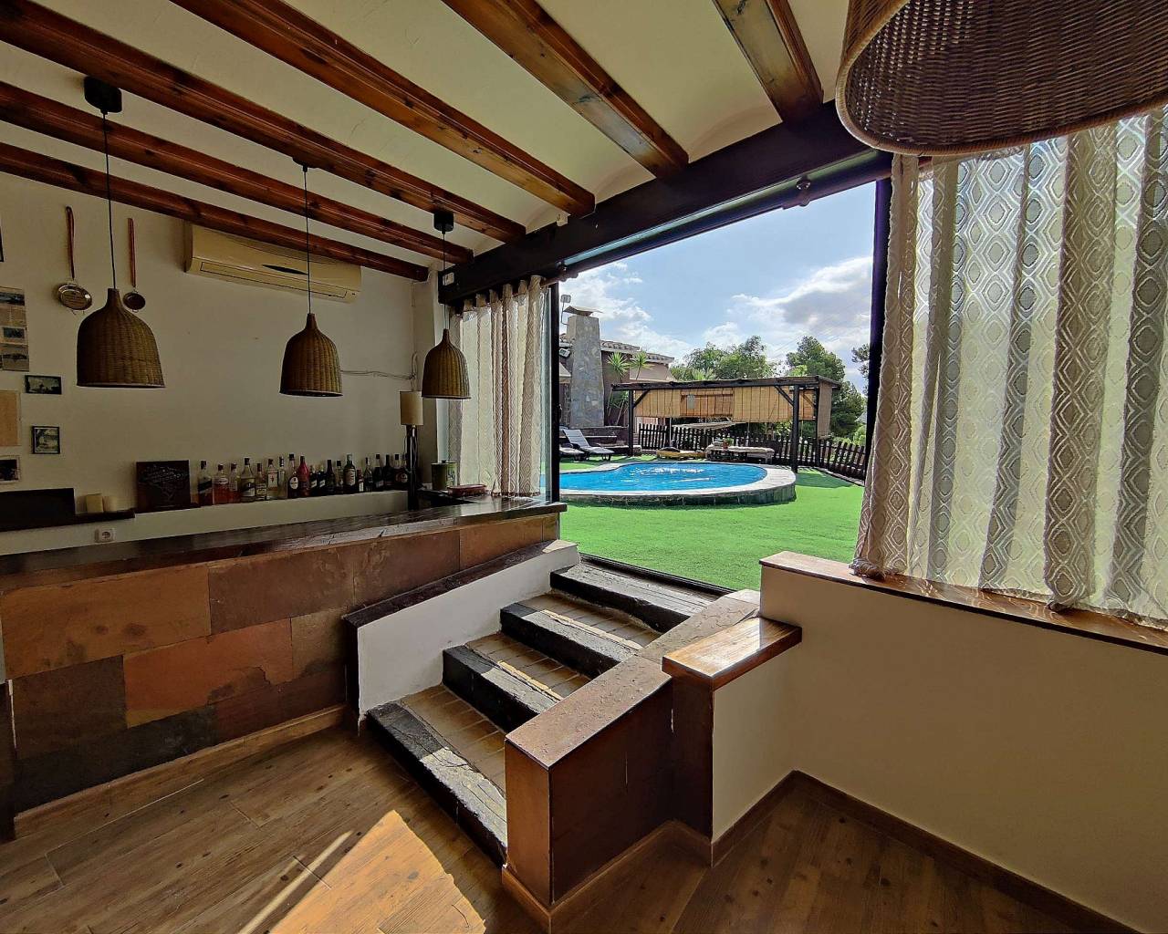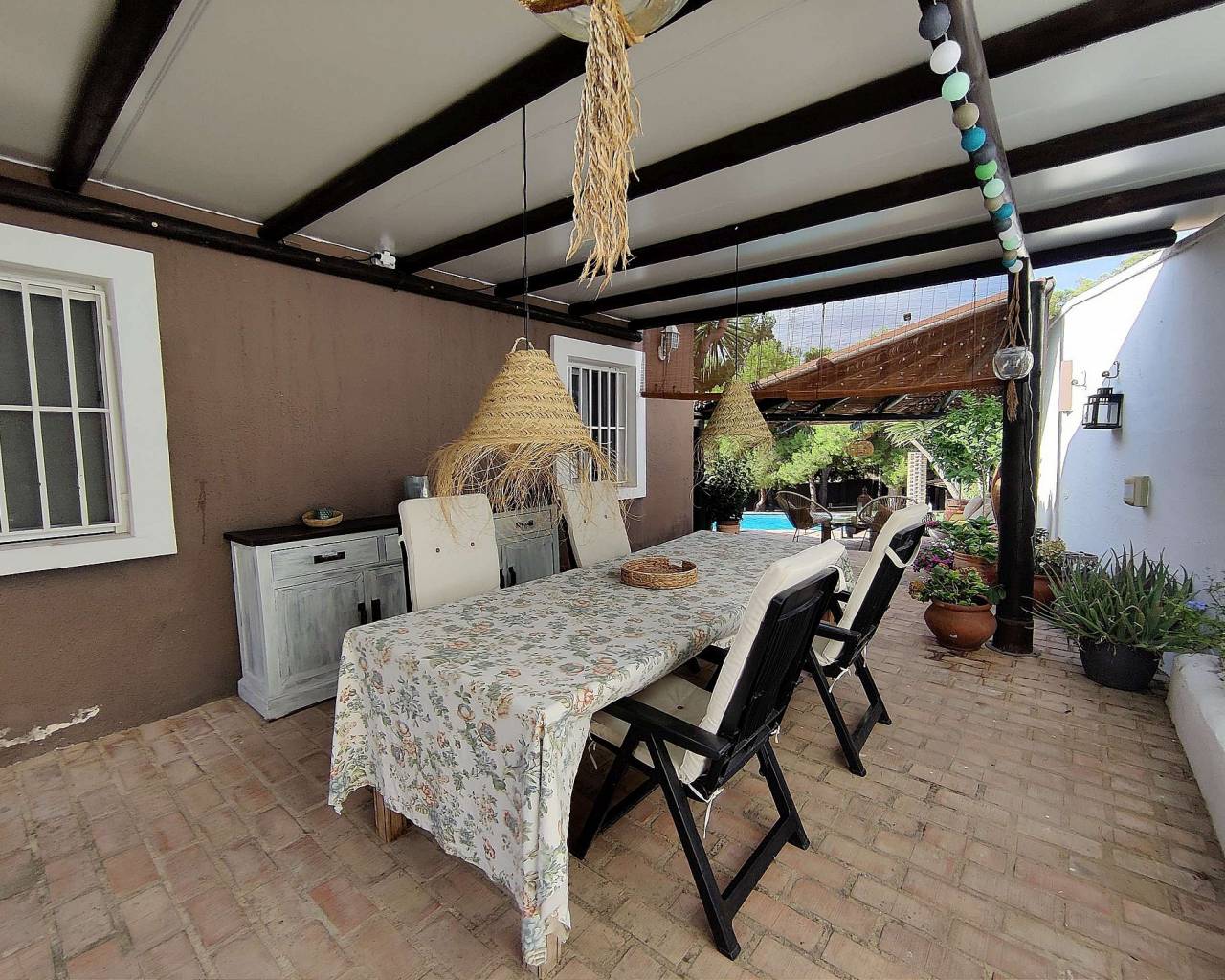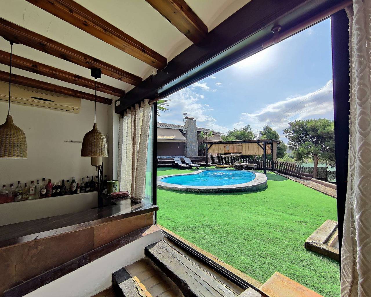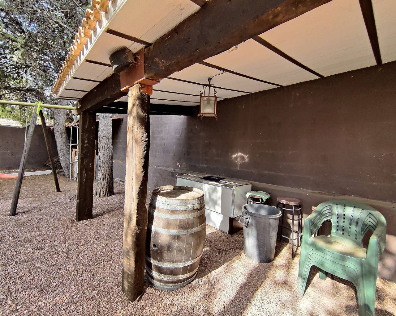 Large Detached Villa walking distance to Monovar. Detached Villa walking distance to Monovar, with a size of around 100m2, 3 bedrooms and 1 bathroom, with a lounge-dining room and open plan kitchen. The plot size is 2000m2, fully enclosed with an automatic gate entrance. There is a swimming pool, a 45m2 summer kitchen by the pool with a bathroom, open barbecue area, two storage rooms, a childrens play room and various seating areas. The garden has big pine trees ideal for shade in the summer. Fully reformed villa ready to move in Monovar is a small town in Alicante province, with a population of over 13,000 people. It is about 15 km from Pinoso and famous for its marble quarries, shoe making and wine. It is in a pretty, mountainous area, the town stands at a height of 341m (1,119 ft). Monovar has several traditional fiestas during the year, ranging from “Dwarves and Giants' ' in July to the week-long town fiesta in September in honour of the Virgen de los Remedios. Like many towns in the area, traditional food includes rice dishes made with rabbit and snail, gazpacho manchego – a hearty rabbit stew, migas – fried breadcrumbs with garlic and usually chorizo and of course the local red wine. There are 4 bodegas close by. The modern day town has many bars and restaurants, small shops, a large supermarket, bullring, two wineries, a theatre/concert hall and a cultural centre. Monovar is a safe and friendly place to live and makes an interesting day visit. It is located on the CV83, the main road that runs from Elda to Pinoso.