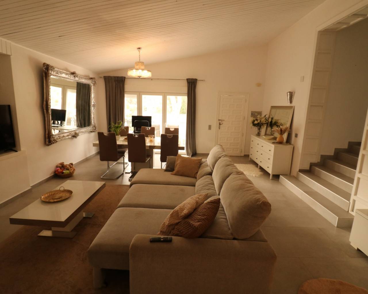 This beautifully renovated 5-bedroom, 3-bathroom villa offers exceptional quality, comfort, and space, set on a private 1,200 m² plot with a 273 m² home , a 60 m² pool , and tranquil views across the garden and trees and quiet neighborhood. Every detail of this home has been lovingly upgraded — new PVC windows , complete re-plumbing , rewiring , new kitchens , modern bathrooms , flooring , and paintwork throughout . The result is a fresh, elegant home ready to move into and enjoy immediately. Located just 25 minutes from Alicante city, beaches, and the airport , and 5 minutes from Elda and Petrer set in idyllic quiet estate.
