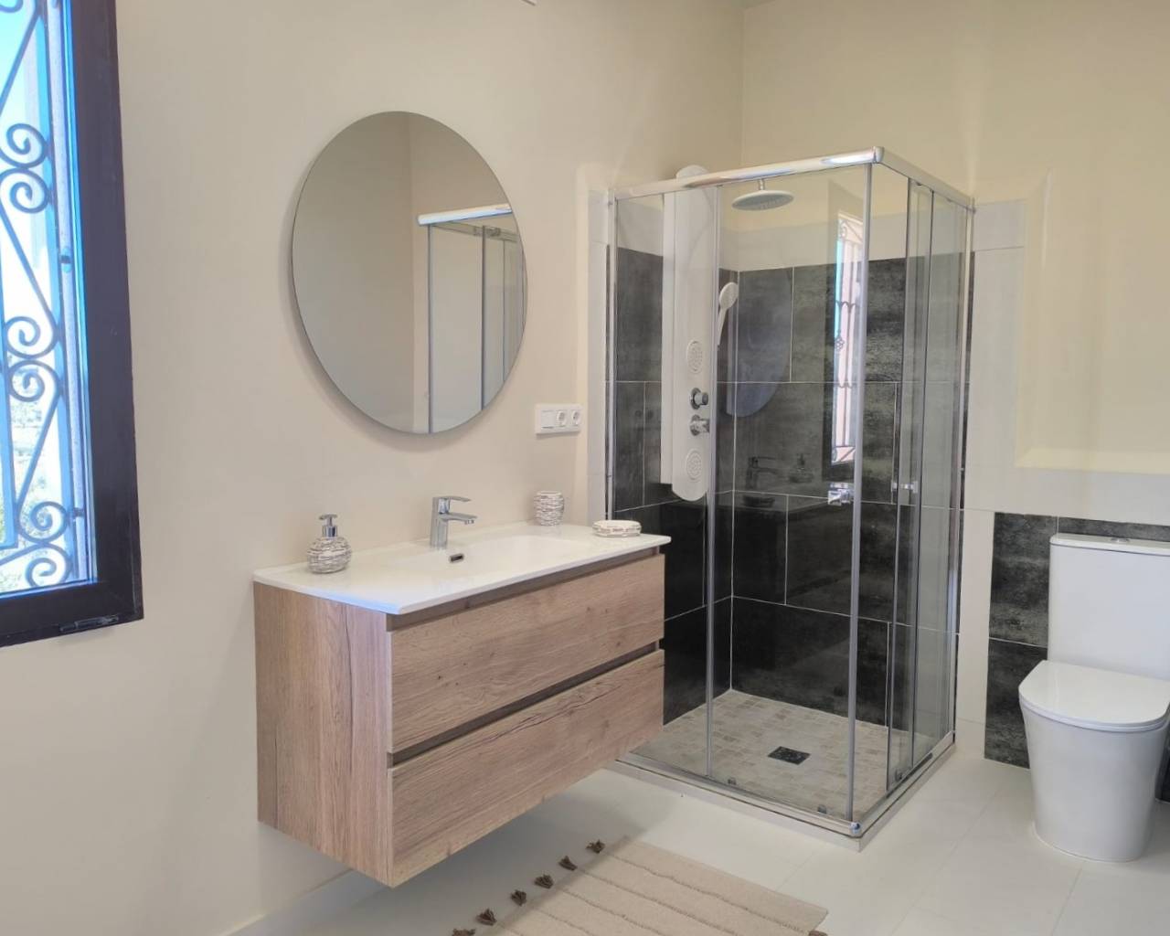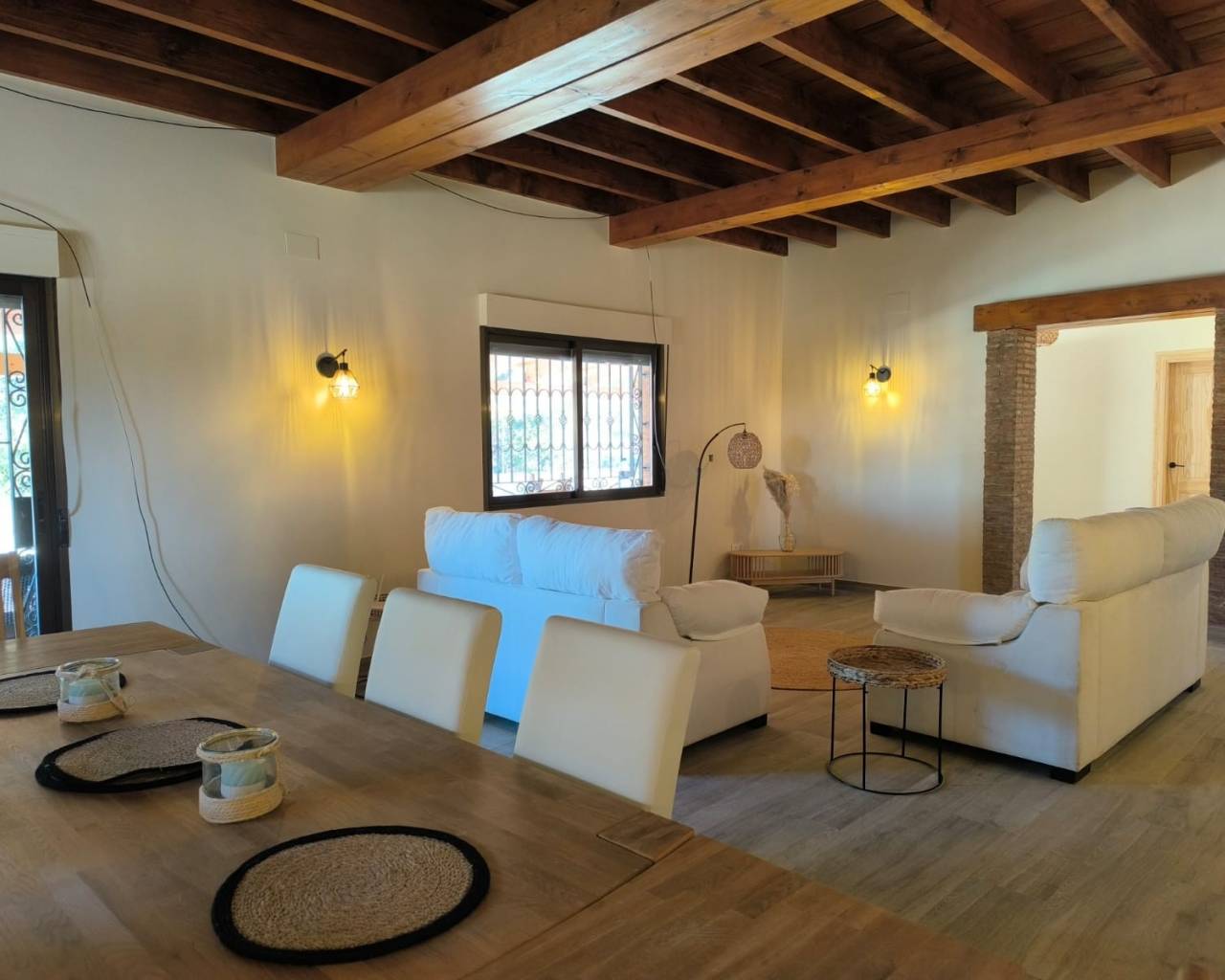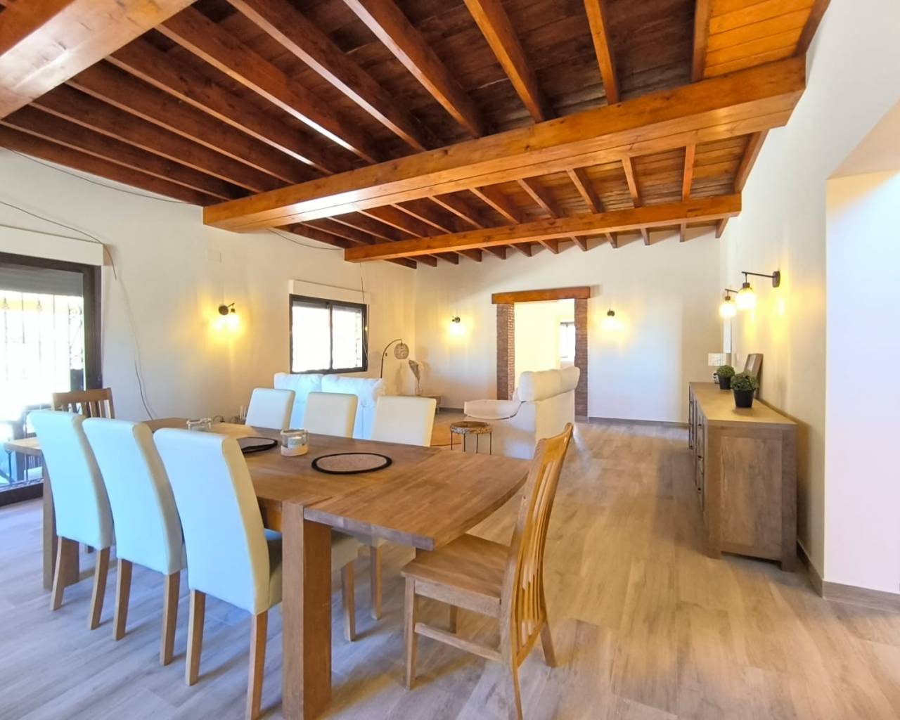 READY TO MOVE INTO NOW – A Warm, Character-Filled Villa with Guest Annexe, Pool & Spectacular Mountain Views | La Zarza, MurciaIf you are searching for something truly special - not another cold, white modern box, but a home with warmth, soul, and exquisite attention to detail—this beautifully renovated villa in La Zarza is an exceptional opportunity. Fully modernised throughout and ready for immediate occupation, this property blends stylish contemporary finishes with natural wood accents and a welcoming Mediterranean ambience.Just a 15-minute drive from Pinoso, the villa enjoys a peaceful countryside setting with breathtaking views across the pine-covered regional park. Set on a 5,000 m² plot (with 3,000 m² securely fenced) and offering 227 m² of high-quality living space, this ready-to-move-in home is ideal for full-time living, a family retreat, or an investment in the booming inland property market.Main House – 3 Bedrooms, All EnsuiteThe main home offers a thoughtful layout and exceptional comfort:Ground-floor master suite with walk-in wardrobe, luxurious ensuite bathroom and direct patio access—wake up to mountain views each morning.A generous entrance hallway creates an impressive first impression, separating the sleeping area from the main living space.A stunning open-plan lounge, dining area and modern kitchen, all flowing out to the large south-facing covered terrace—your year-round outdoor living and entertaining space.Beautiful views over the alpine-style mountain backdrop.A spacious utility room / larder, perfect for extra storage.A second hallway leads to a useful storage cupboard and the home's architectural centrepiece:Floating Staircase With LED LightingThis striking staircase leads to the first floor, where you'll find:Two large double bedrooms, both featuring modern ensuite shower rooms.The balustrade can still be customised to match your preferred style.Guest Annexe – Perfect for Visitors or Rental IncomeAdjacent to the main home is a fully self-contained studio annexe, complete with:Private entranceKitchenBathroomIdeal for guests, older family members, or holiday lettings.Outdoor Living & Stunning ViewsThe exterior of the property offers everything needed to enjoy Spanish outdoor living:Inviting swimming pool with panoramic mountain viewsLarge terrace areas for sunbathing and diningBeautiful natural surroundings with a backdrop of pine forests and protected parklandThe villa benefits from mains electricity and a large water deposit, making it highly suitable for year-round living.Fully Renovated – Ready for Immediate LivingThe property has undergone a complete renovation, including:New bathrooms with modern finishesNew kitchen and appliancesNew flooring in the entire houseFully repainted to give fresh clean consistent finsihUpdated lighting throughoutNew septic tank installedFresh finishes and updated fittingsThis is a rare opportunity to acquire a unique, character-rich home that is finished to a high standard and available right now.If you are seeking a property that feels warm, welcoming and genuinely different—this villa is the perfect match.We are specialists in the Costa Blanca and Costa Calida specialising in the Alicante and Murcia Inland regions with a particular emphasis on Elda, Pinoso, Aspe, Elche and surrounding areas. We are an established, well known and trusted company that has built a solid reputation amongst buyers and sellers since we began trading in 2004. We offer a complete service with no hidden charges or surprises, starting with sourcing the property, right through to completion, and an unrivalled after sales service which includes property management, building services, and general help and advice to make your new house a home. With a portfolio of well over 1400 properties for sale, we are confident that we can help, so just let us know your preferred property, budget and location, and we will do the rest.