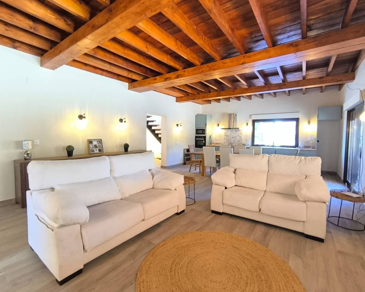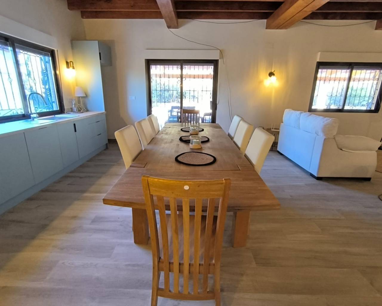 READY TO MOVE INTO NOW – A Warm, Character-Filled Villa with Guest Annexe, Pool & Spectacular Mountain Views | La Zarza, MurciaIf you are searching for something truly special - not another cold, white modern box, but a home with warmth, soul, and exquisite attention to detail—this beautifully renovated villa in La Zarza is an exceptional opportunity. Fully modernised throughout and ready for immediate occupation, this property blends stylish contemporary finishes with natural wood accents and a welcoming Mediterranean ambience.Just a 15-minute drive from Pinoso, the villa enjoys a peaceful countryside setting with breathtaking views across the pine-covered regional park. Set on a 5,000 m² plot (with 3,000 m² securely fenced) and offering 227 m² of high-quality living space, this ready-to-move-in home is ideal for full-time living, a family retreat, or an investment in the booming inland property market.Main House – 3 Bedrooms, All EnsuiteThe main home offers a thoughtful layout and exceptional comfort:Ground-floor master suite with walk-in wardrobe, luxurious ensuite bathroom and direct patio access—wake up to mountain views each morning.A generous entrance hallway creates an impressive first impression, separating the sleeping area from the main living space.A stunning open-plan lounge, dining area and modern kitchen, all flowing out to the large south-facing covered terrace—your year-round outdoor living and entertaining space.Beautiful views over the alpine-style mountain backdrop.A spacious utility room / larder, perfect for extra storage.A second hallway leads to a useful storage cupboard and the home's architectural centrepiece:Floating Staircase With LED LightingThis striking staircase leads to the first floor, where you'll find:Two large double bedrooms, both featuring modern ensuite shower rooms.The balustrade can still be customised to match your preferred style.Guest Annexe – Perfect for Visitors or Rental IncomeAdjacent to the main home is a fully self-contained studio annexe, complete with:Private entranceKitchenBathroomIdeal for guests, older family members, or holiday lettings.Outdoor Living & Stunning ViewsThe exterior of the property offers everything needed to enjoy Spanish outdoor living:Inviting swimming pool with panoramic mountain viewsLarge terrace areas for sunbathing and diningBeautiful natural surroundings with a backdrop of pine forests and protected parklandThe villa benefits from mains electricity and a large water deposit, making it highly suitable for year-round living.Fully Renovated – Ready for Immediate LivingThe property has undergone a complete renovation, including:New bathrooms with modern finishesNew kitchen and appliancesNew flooring in the entire houseFully repainted to give fresh clean consistent finsihUpdated lighting throughoutNew septic tank installedFresh finishes and updated fittingsThis is a rare opportunity to acquire a unique, character-rich home that is finished to a high standard and available right now.If you are seeking a property that feels warm, welcoming and genuinely different—this villa is the perfect match.We are specialists in the Costa Blanca and Costa Calida specialising in the Alicante and Murcia Inland regions with a particular emphasis on Elda, Pinoso, Aspe, Elche and surrounding areas. We are an established, well known and trusted company that has built a solid reputation amongst buyers and sellers since we began trading in 2004. We offer a complete service with no hidden charges or surprises, starting with sourcing the property, right through to completion, and an unrivalled after sales service which includes property management, building services, and general help and advice to make your new house a home. With a portfolio of well over 1400 properties for sale, we are confident that we can help, so just let us know your preferred property, budget and location, and we will do the rest.